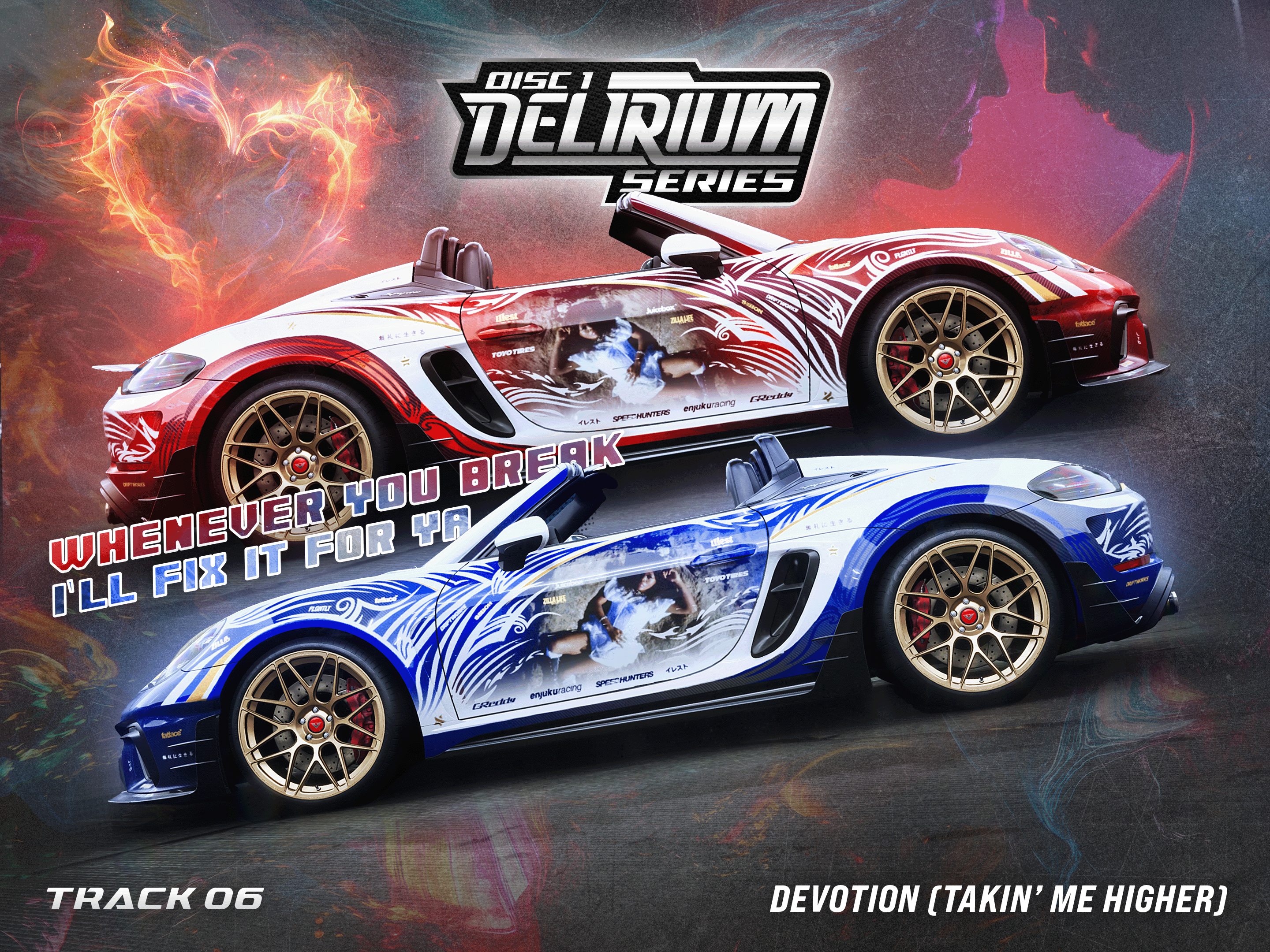 Delikatnie miłosny projekt - bardziej chodzi o oddanie w związku (niekoniecznie z drugim człowiekiem, ale też np. z pasją) niż o jakieś konkretne doświadczenia. Zestawienie dwóch stron - zewnętrznego chłodu i ciepła, które pokazujesz po bliższym poznaniu. Zewnętrzny chłód nie dopuszcza do siebie, następnie odkrywasz drugą stronę w eksplozji ciepła. Nie mógł powstać na innym aucie, niż esencji połączenia delikatności form z pazurem, czyli Porsche 718.