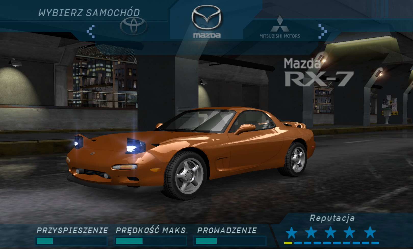 | Mazda RX-7 | 1995 | 30,000 | Ukończ wyścig nr 73 w trybie Underground |