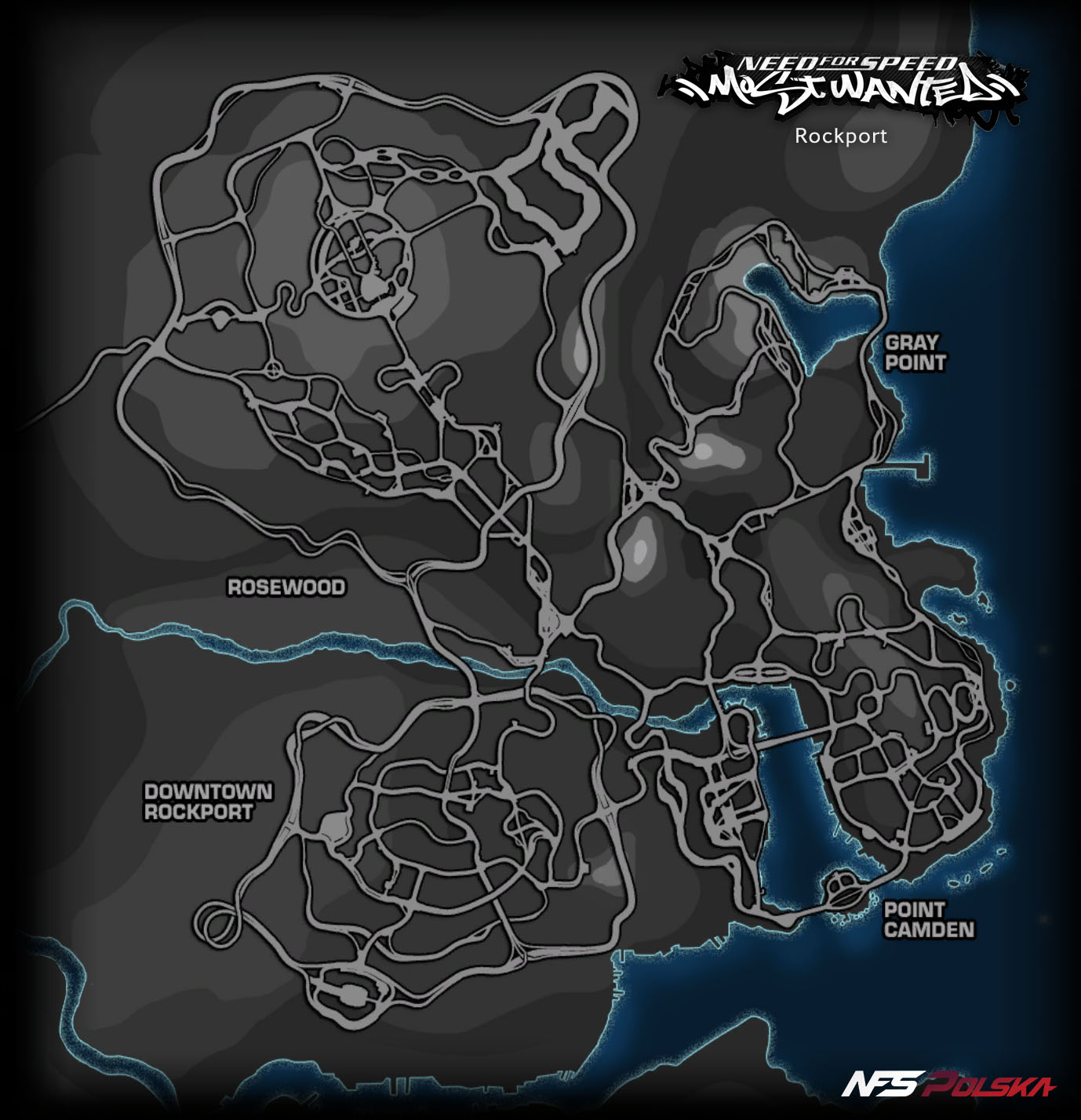 Obszar w Need for Speed Most Wanted został podzielony na trzy dzielnice: Rosewood, Camden Beach i Downtown Rockport. Pierwszą z nich możemy eksplorować od początku gry. By uzyskać dostęp do Camden Beach, musimy pokonać Vica zajmującego trzynastą pozycję na Czarnej Liście. Z kolei bramy do Downtown Rockport otworzą się po wygranym pojedynku z Earlem (numer 9).
