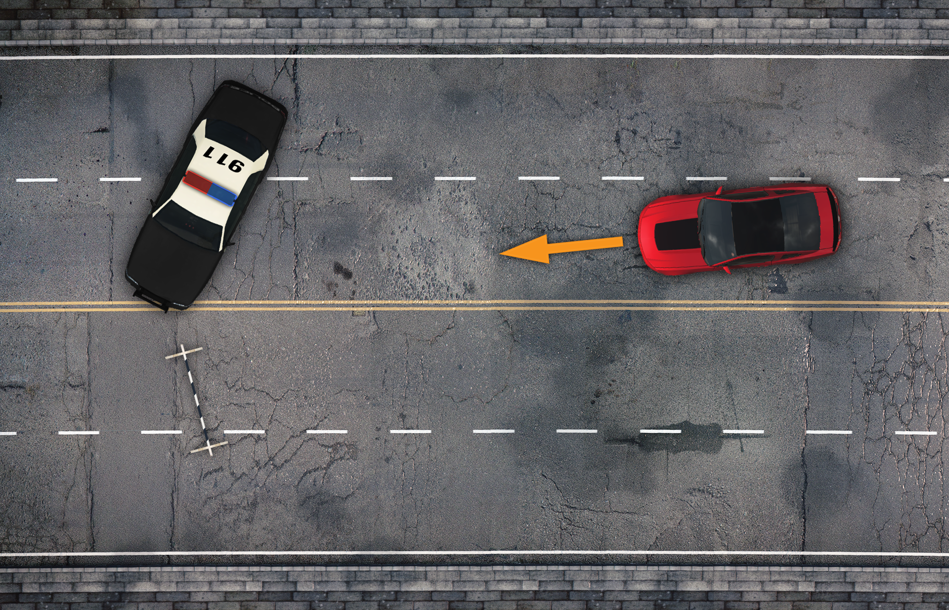 | Radiowóz Policji Stanowej | 3 | 2500 | Prostokąty, pościgowe stada, PIT, ruchome blokady drogowe |
