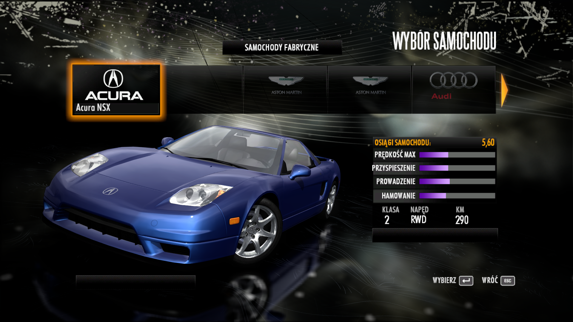 | Acura NSX | 2 | Japońska | 0 | RWD | ✓ | Dostępny od początku | Exotic Racing Series Pack |