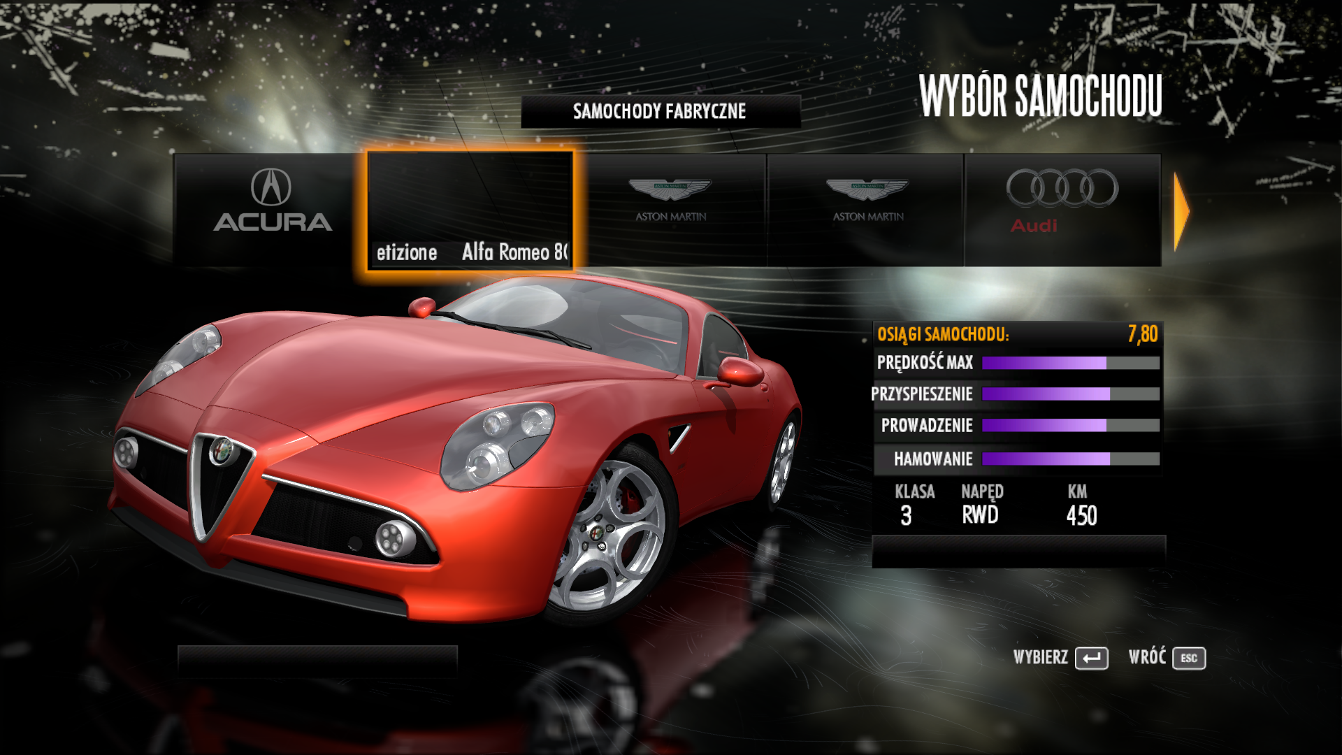 | Alfa Romeo 8C Competizione | 3 | Europejska | 0 | RWD | ✓ | Dostępny od początku | Exotic Racing Series Pack |