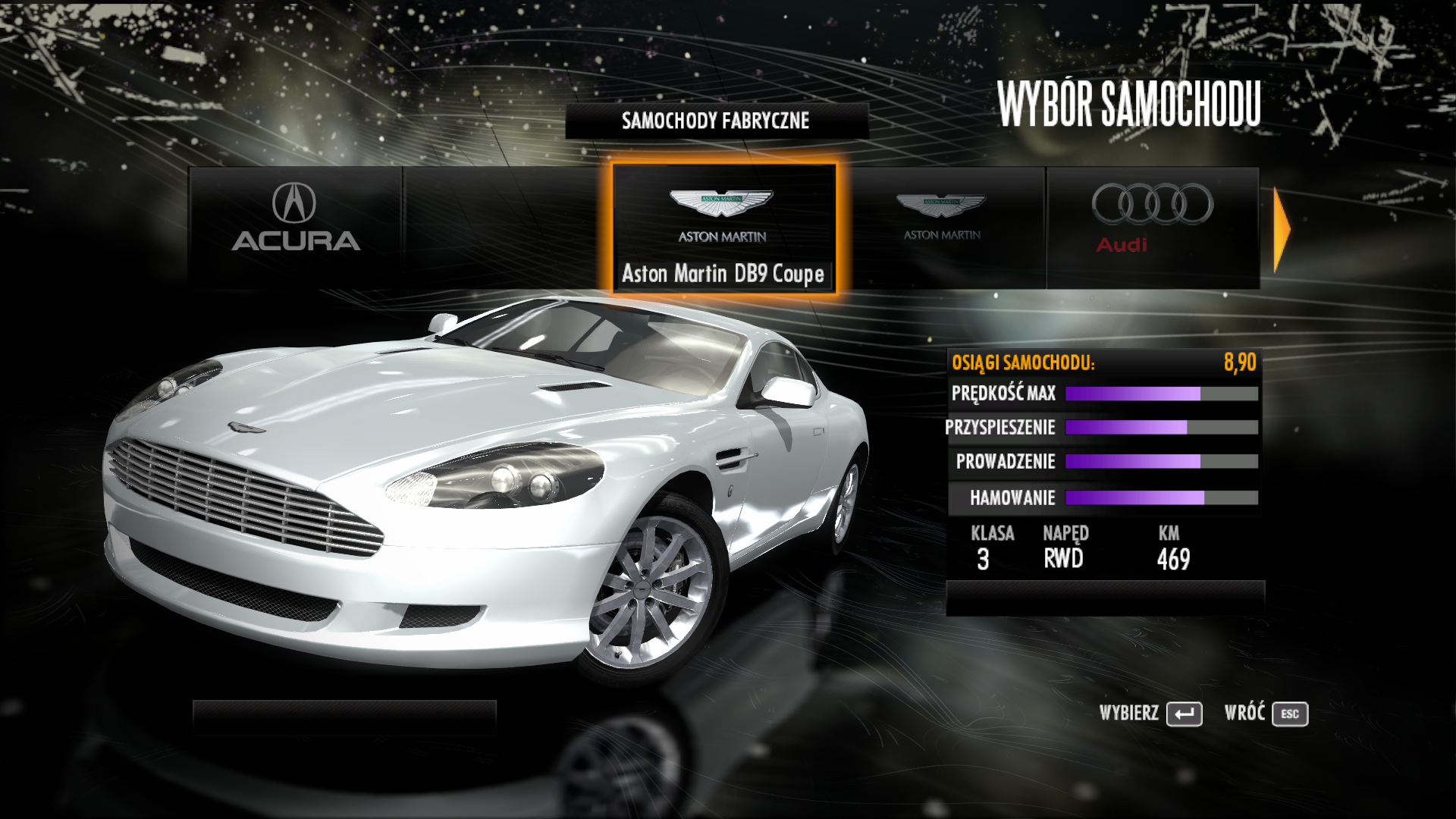 | Aston Martin DB9 Coupe | 3 | Europejska | 160,000 | RWD | 80 gwiazdek | Podstawowa wersja gry | |