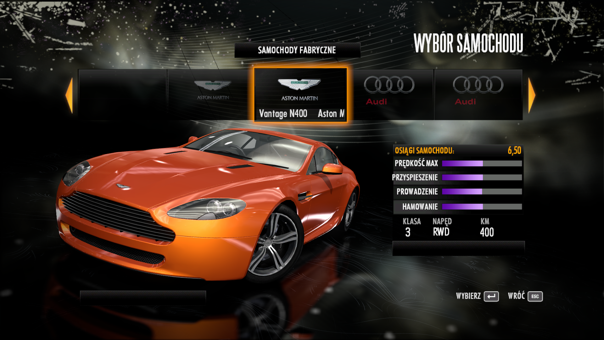 | Aston Martin V8 Vantage N400 | 3 | Europejska | 130,000 | RWD | 80 gwiazdek | Podstawowa wersja gry | |