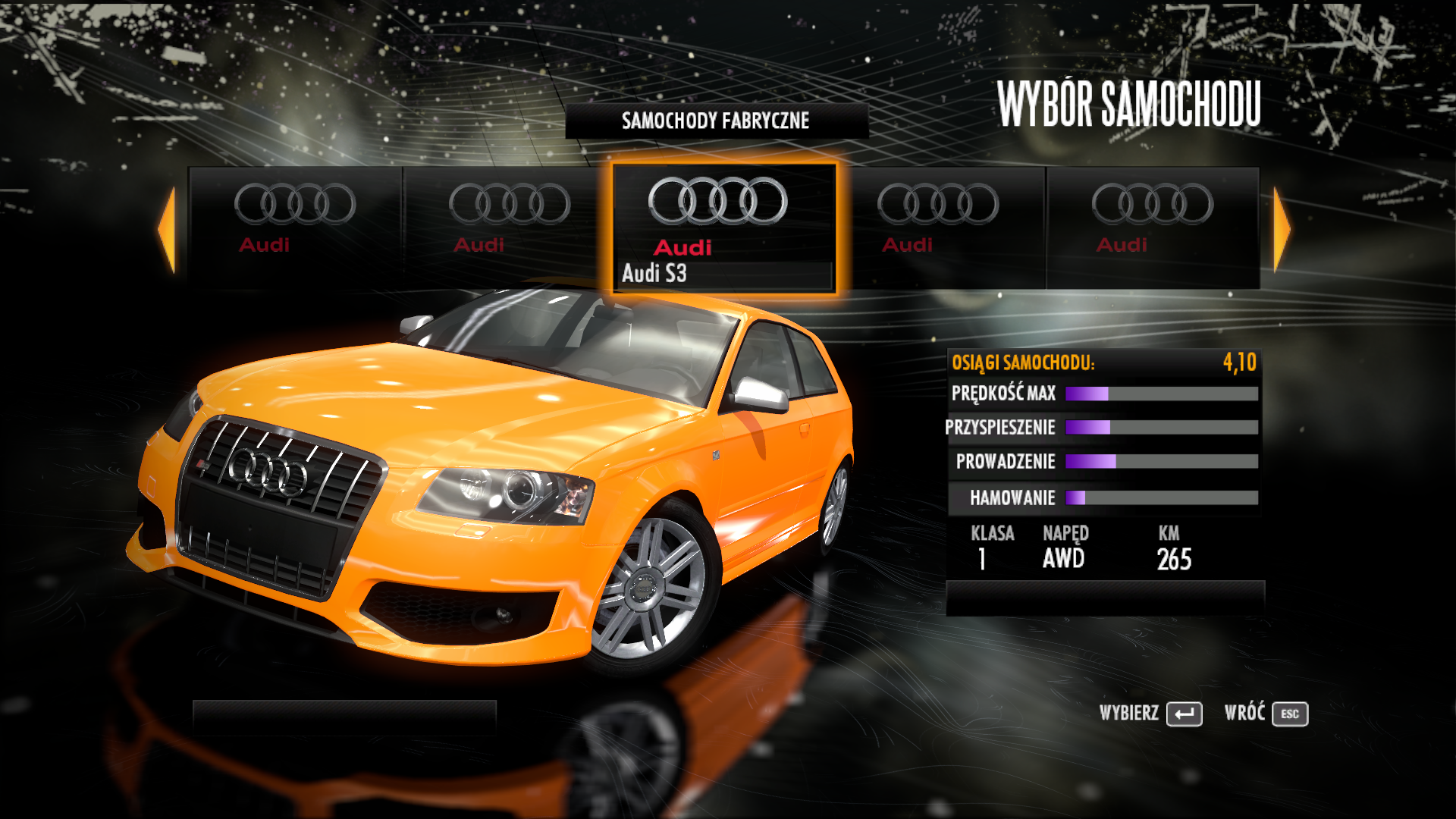 | Audi S3 | 2 | Europejska | 30,000 | AWD | Dostępny od początku | Podstawowa wersja gry | |