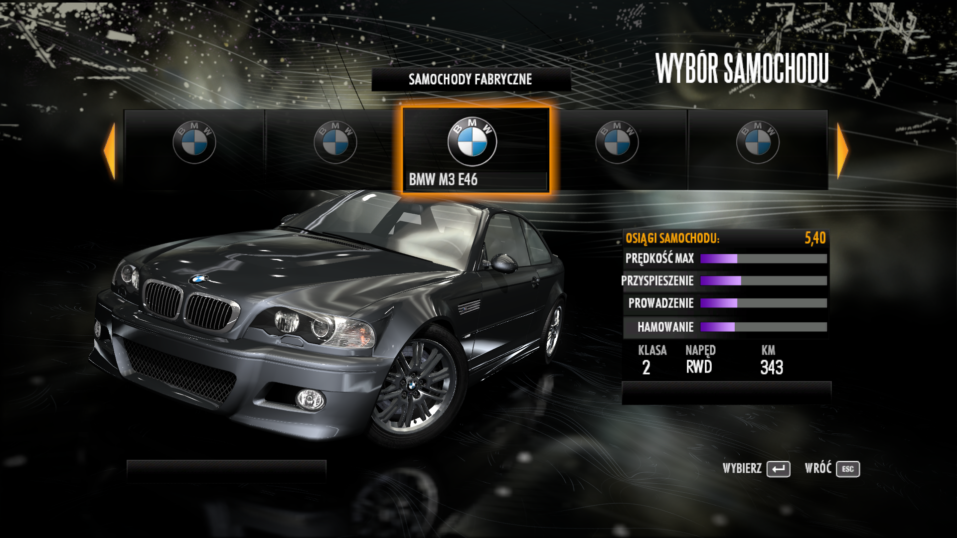 | BMW M3 E46 | 2 | Europejska | 58,000 | RWD | ✓ | 30 gwiazdek | Podstawowa wersja gry |