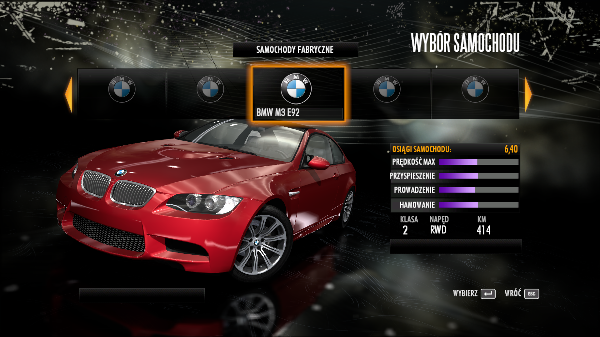 | BMW M3 E92 | 2 | Europejska | 80,000 | RWD | 30 gwiazdek | Podstawowa wersja gry | |