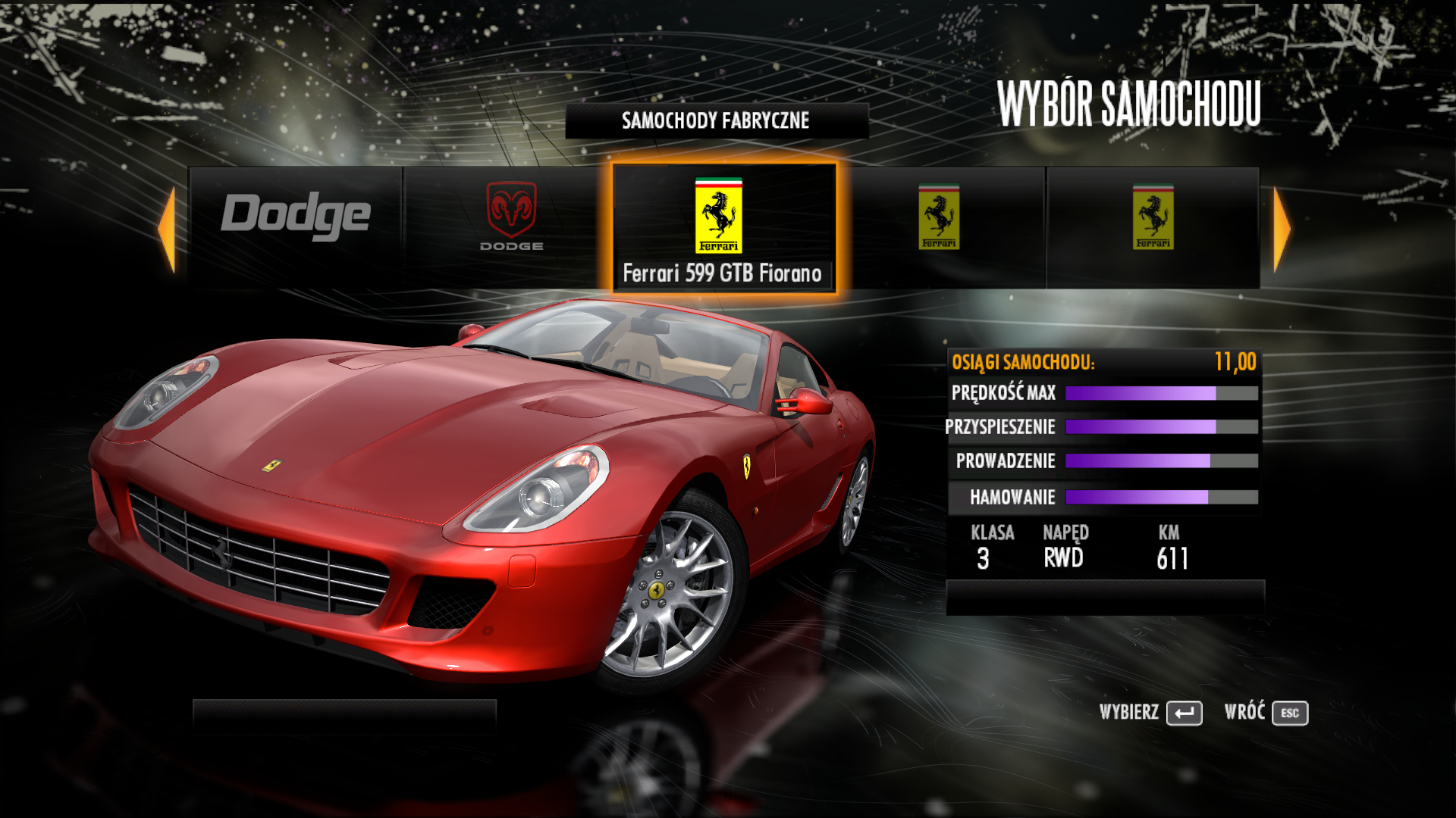 | Ferrari 599 GTB Fiorano | 3 | Europejska | 0 | RWD | Dostępny od początku | Ferrari Racing Pack | |