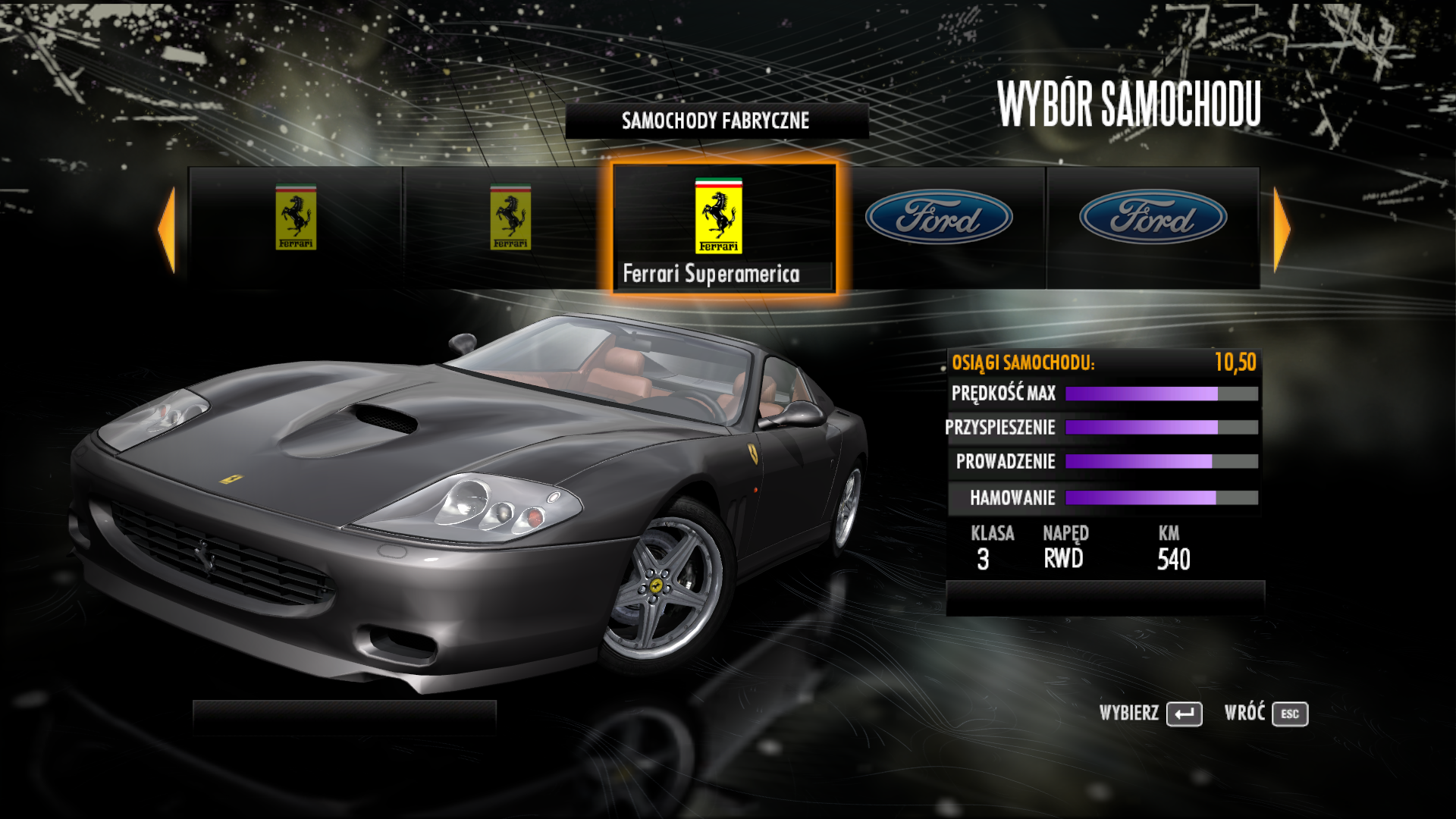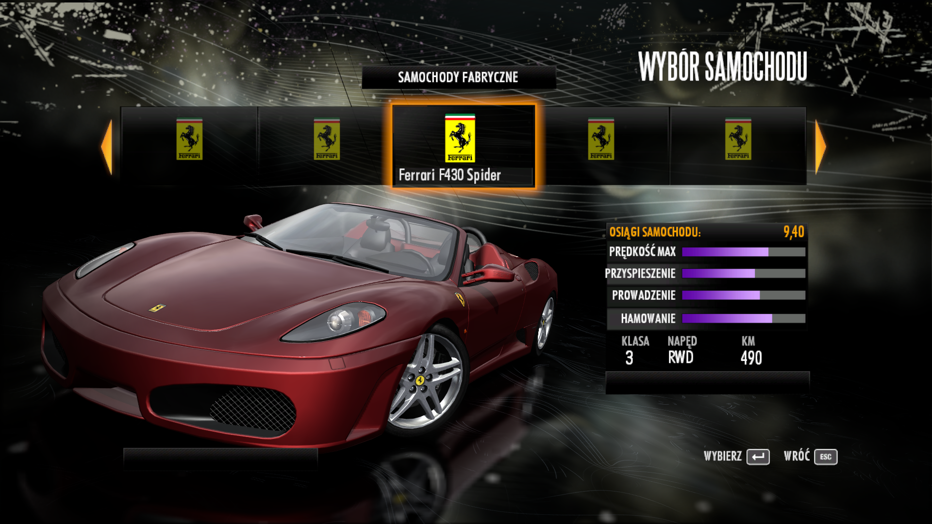 | Ferrari F430 Spider | 3 | Europejska | 0 | RWD | Dostępny od początku | Ferrari Racing Pack | |