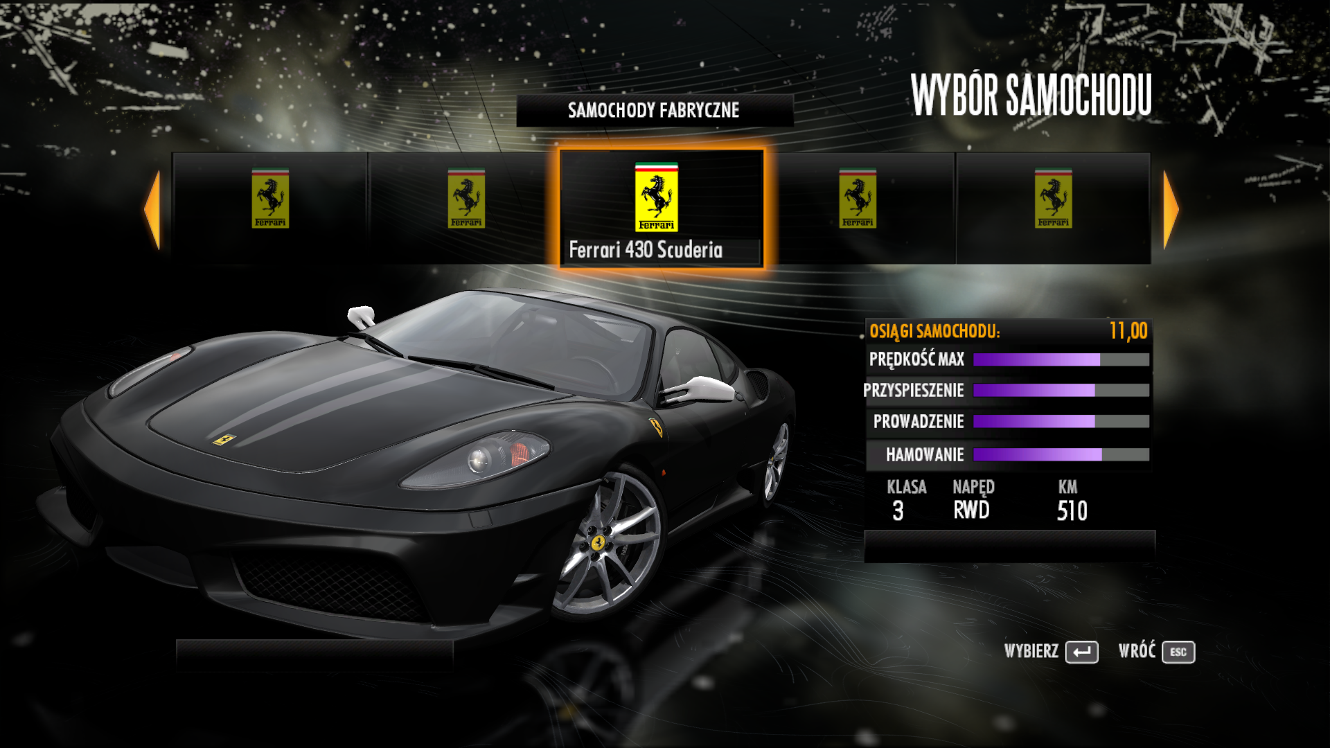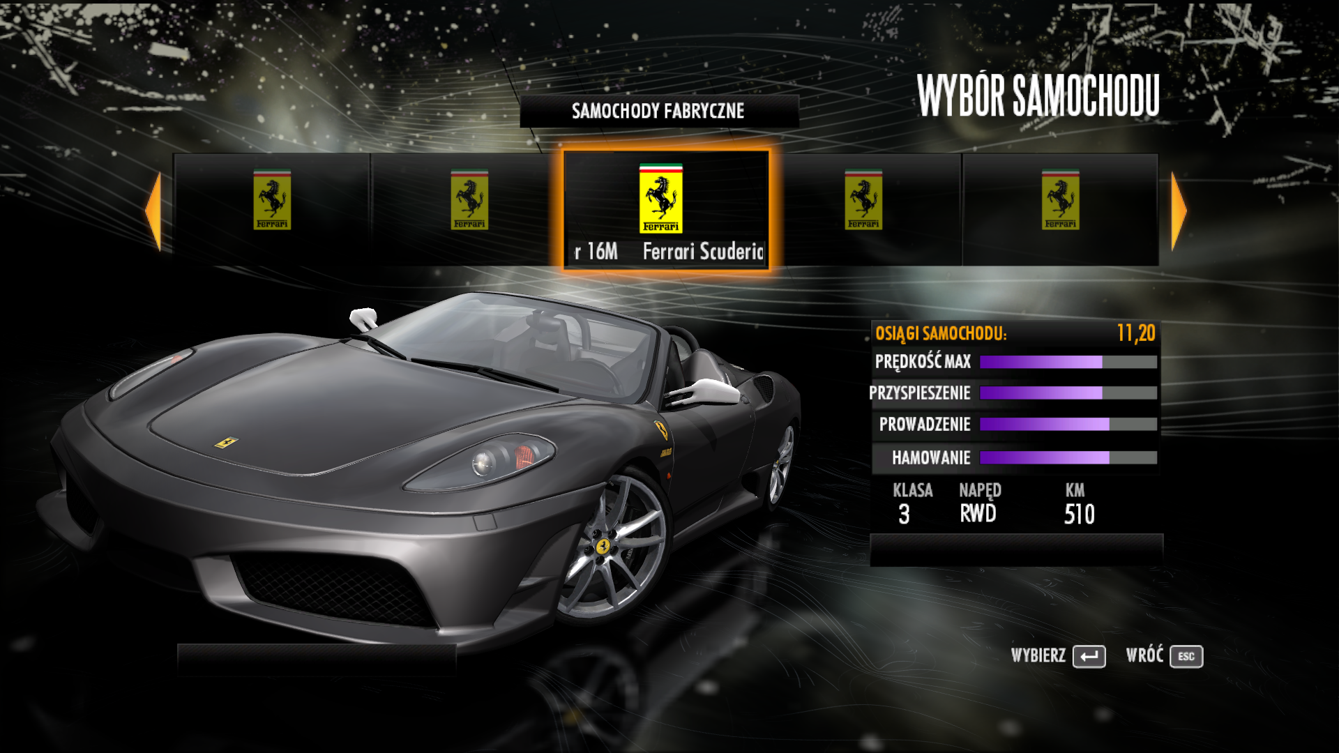 | Ferrari 430 Scuderia | 3 | Europejska | 0 | RWD | Dostępny od początku | Ferrari Racing Pack | |