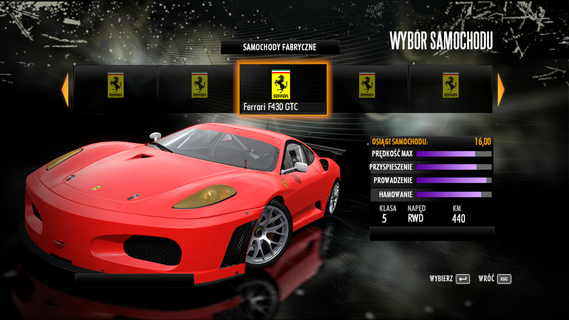 | Ferrari F430 GTC | 5 | Europejska | 0 | RWD | Dostępny od początku | Ferrari Racing Pack | |