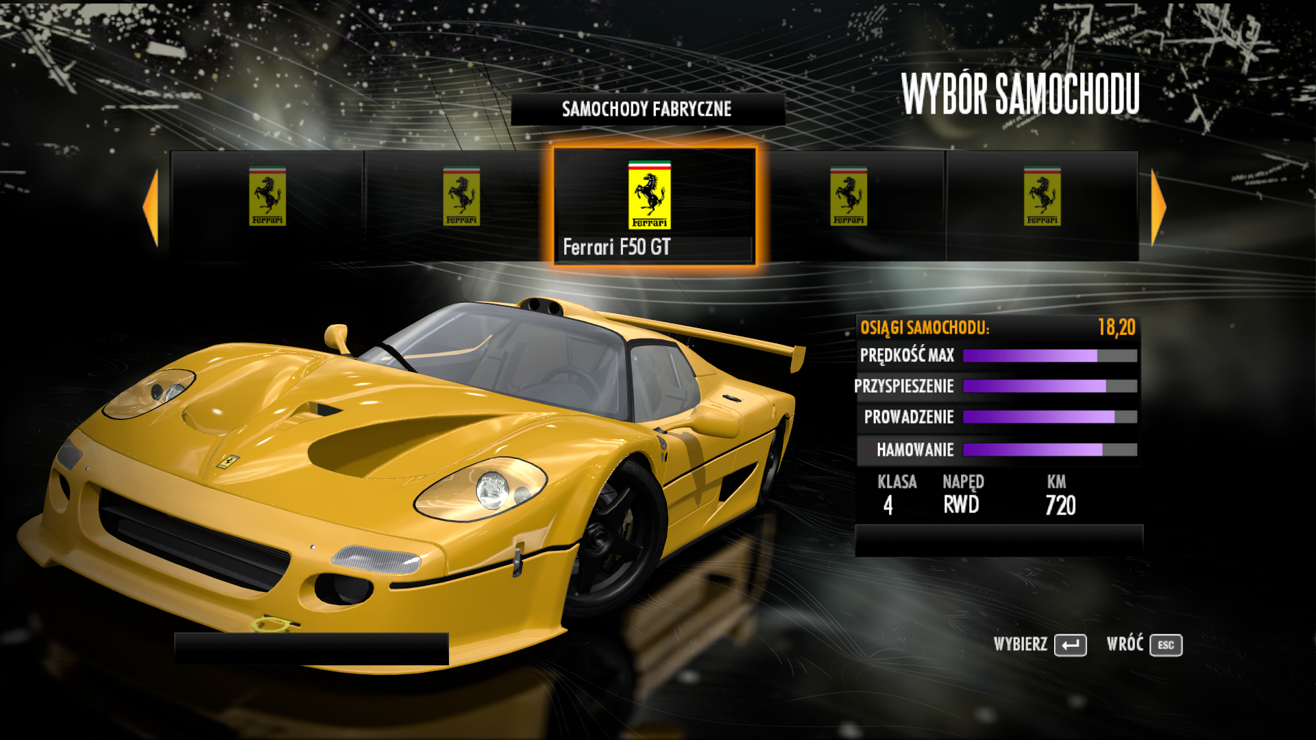 | Ferrari F50 GT | 4 | Europejska | 0 | RWD | Dostępny od początku | Ferrari Racing Pack | |