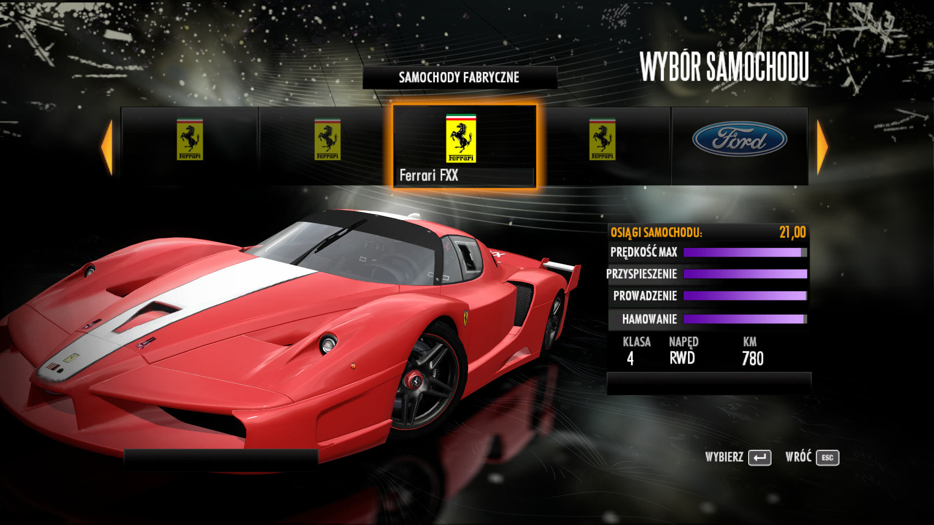 | Ferrari FXX | 4 | Europejska | 0 | RWD | Dostępny od początku | Ferrari Racing Pack | |