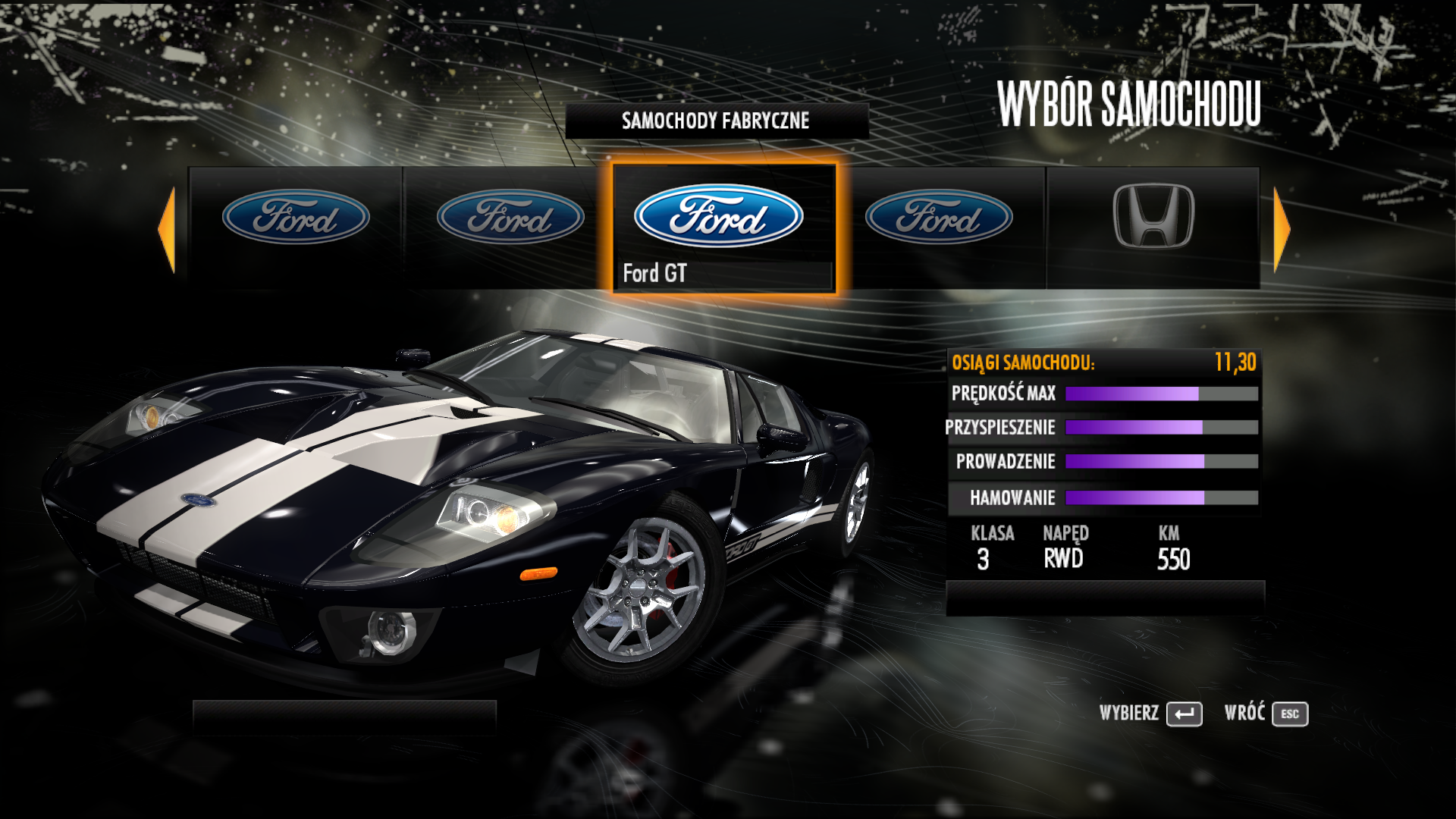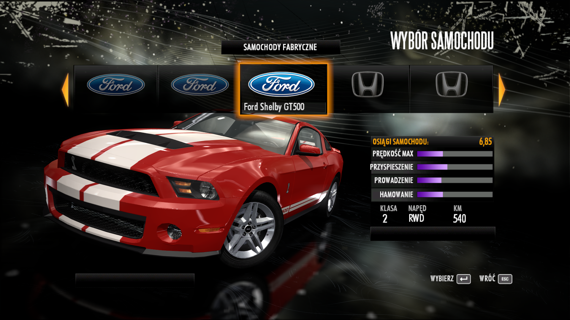 | Ford Shelby GT500 (2010) | 2 | Amerykańska | 90,000 | RWD | ✓ | 30 gwiazdek | Podstawowa wersja gry |