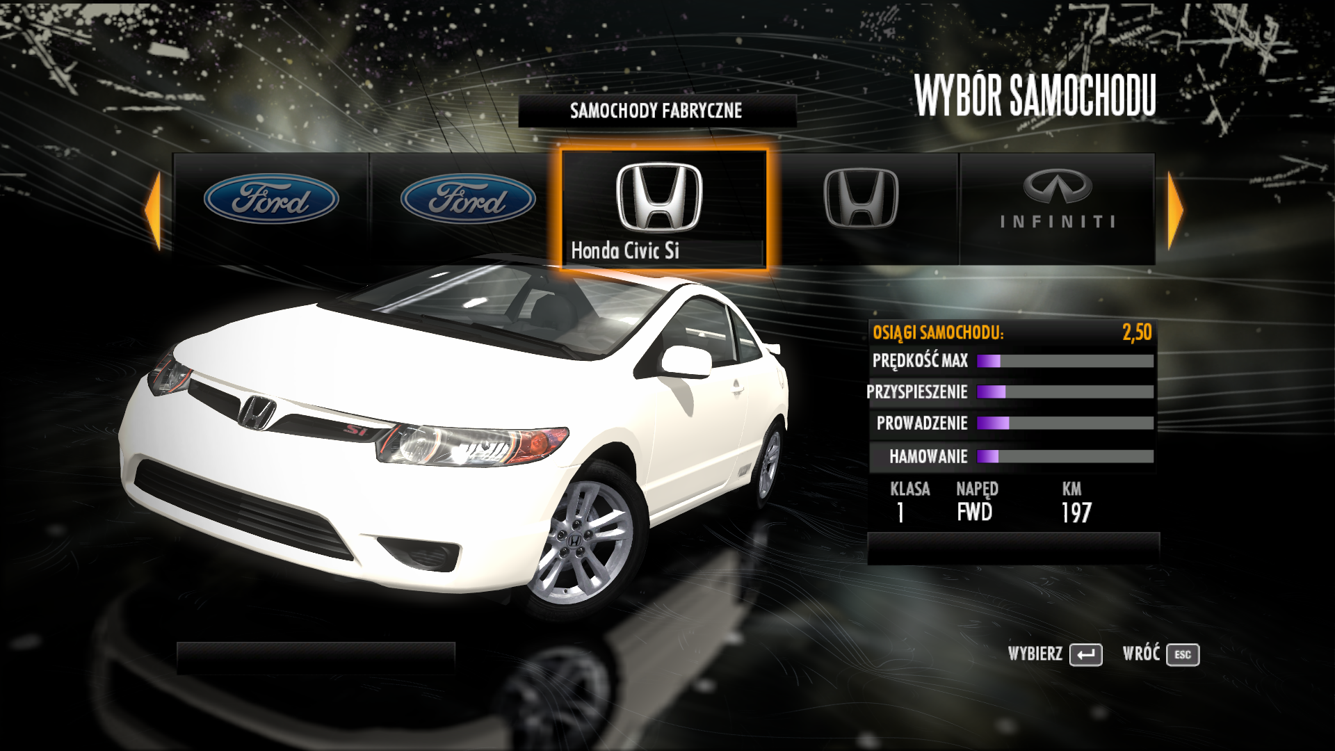 | Honda Civic Si | 1 | Japońska | 21,000 | FWD | Dostępny od początku | Podstawowa wersja gry | |