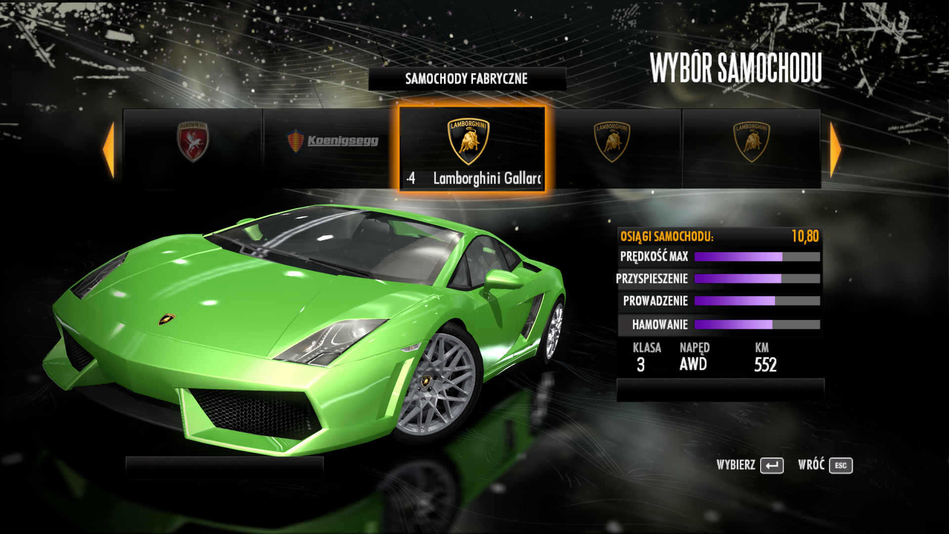 | Lamborghini Gallardo LP560-4 | 3 | Europejska | 220,000 | AWD | 80 gwiazdek | Podstawowa wersja gry | |