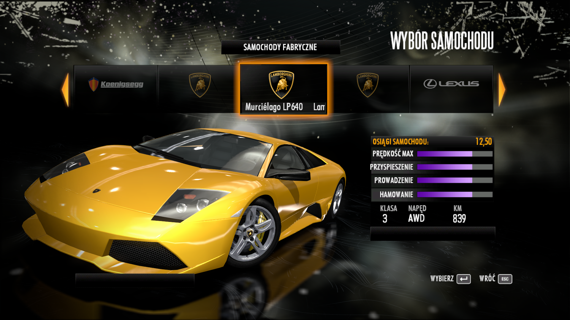 | Lamborghini Murciélago LP640 | 3 | Europejska | 300,000 | AWD | 80 gwiazdek | Podstawowa wersja gry | |