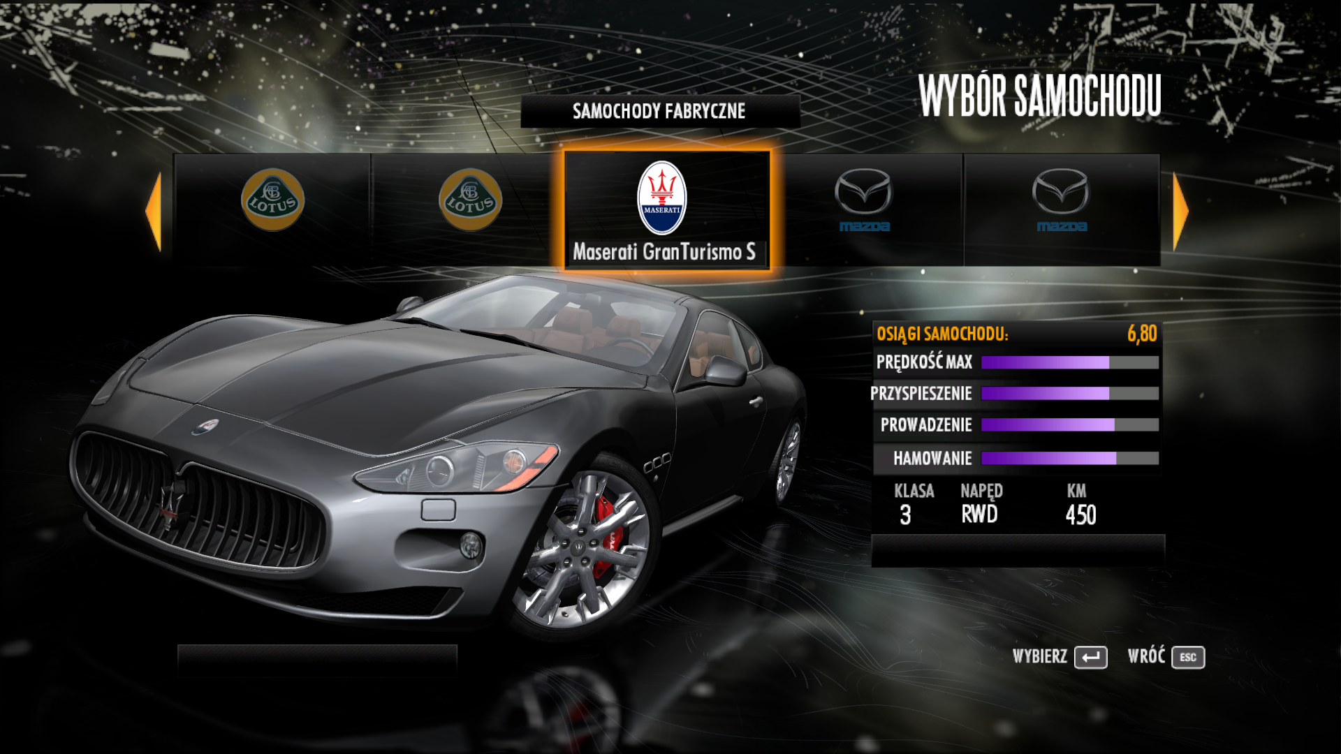 | Maserati GranTurismo S | 3 | Europejska | 0 | RWD | Dostępny od początku | Exotic Racing Series Pack | |