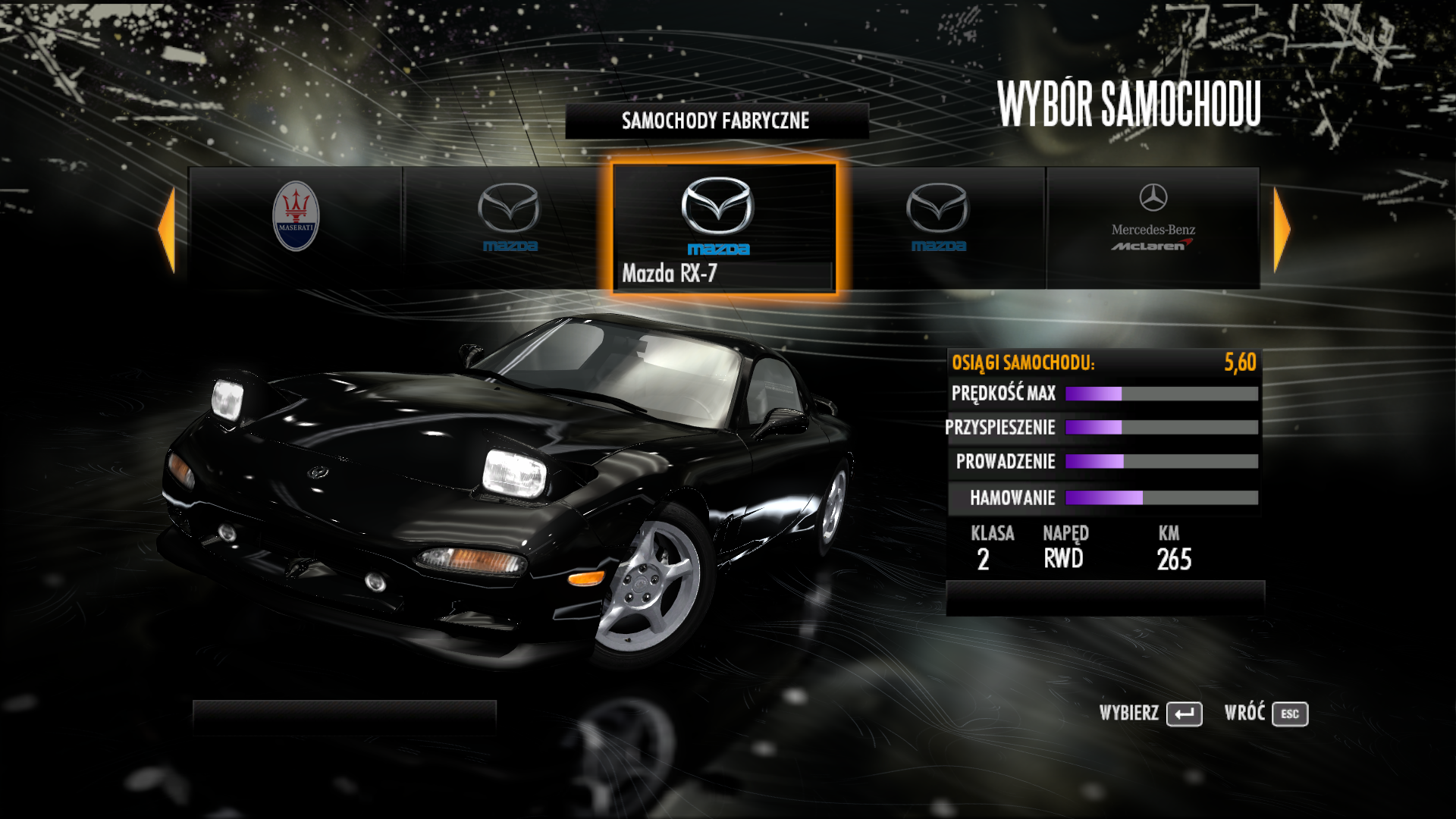 | Mazda RX-7 | 2 | Japońska | 65,000 | RWD | ✓ | 30 gwiazdek | Podstawowa wersja gry |