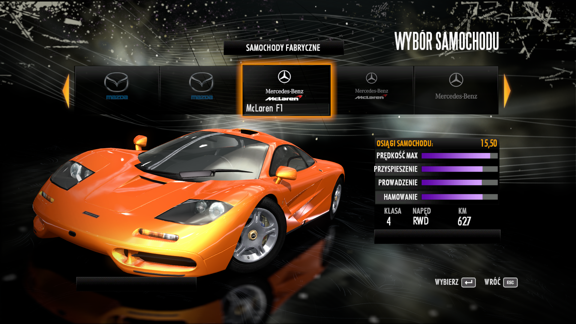 | McLaren F1 | 4 | Europejska | 850,000 | RWD | 180 gwiazdek | Podstawowa wersja gry | |