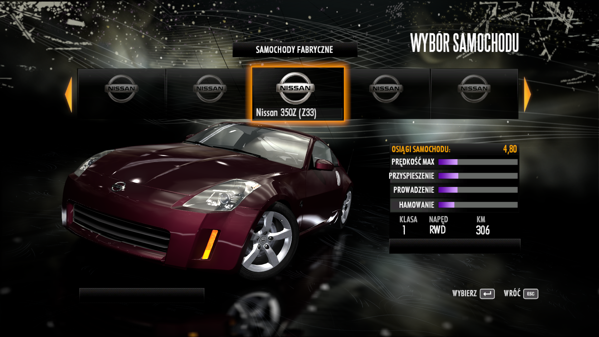 | Nissan 350Z (Z33) | 2 | Japońska | 46,000 | RWD | ✓ | 30 gwiazdek | Podstawowa wersja gry |