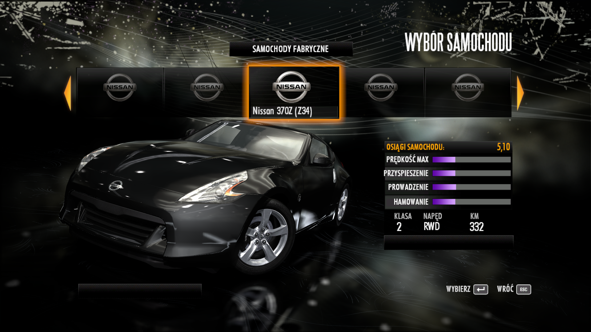 | Nissan 370Z (Z34) | 2 | Japońska | 55,000 | RWD | 30 gwiazdek | Podstawowa wersja gry | |