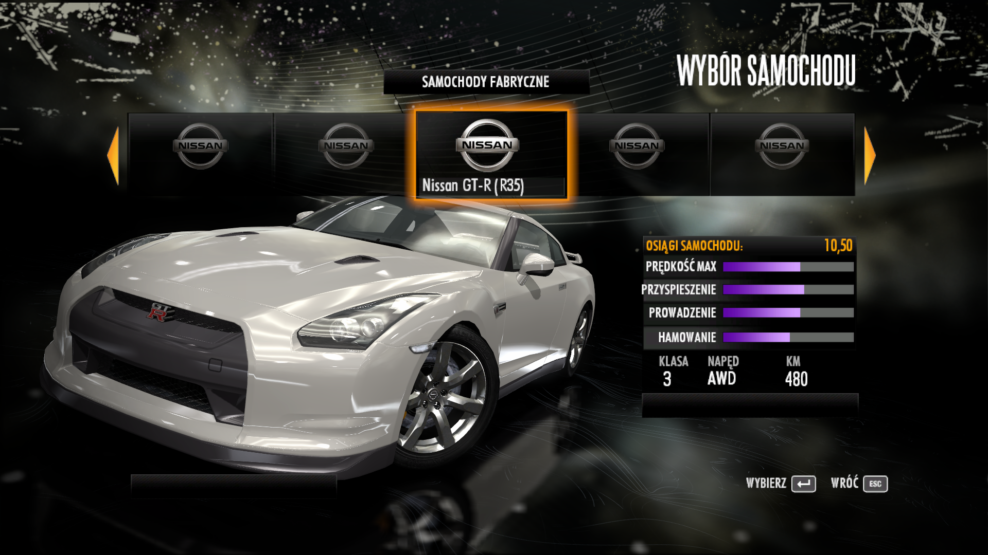 | Nissan GT-R (R35) | 3 | Japońska | 165,000 | AWD | 80 gwiazdek | Podstawowa wersja gry | |