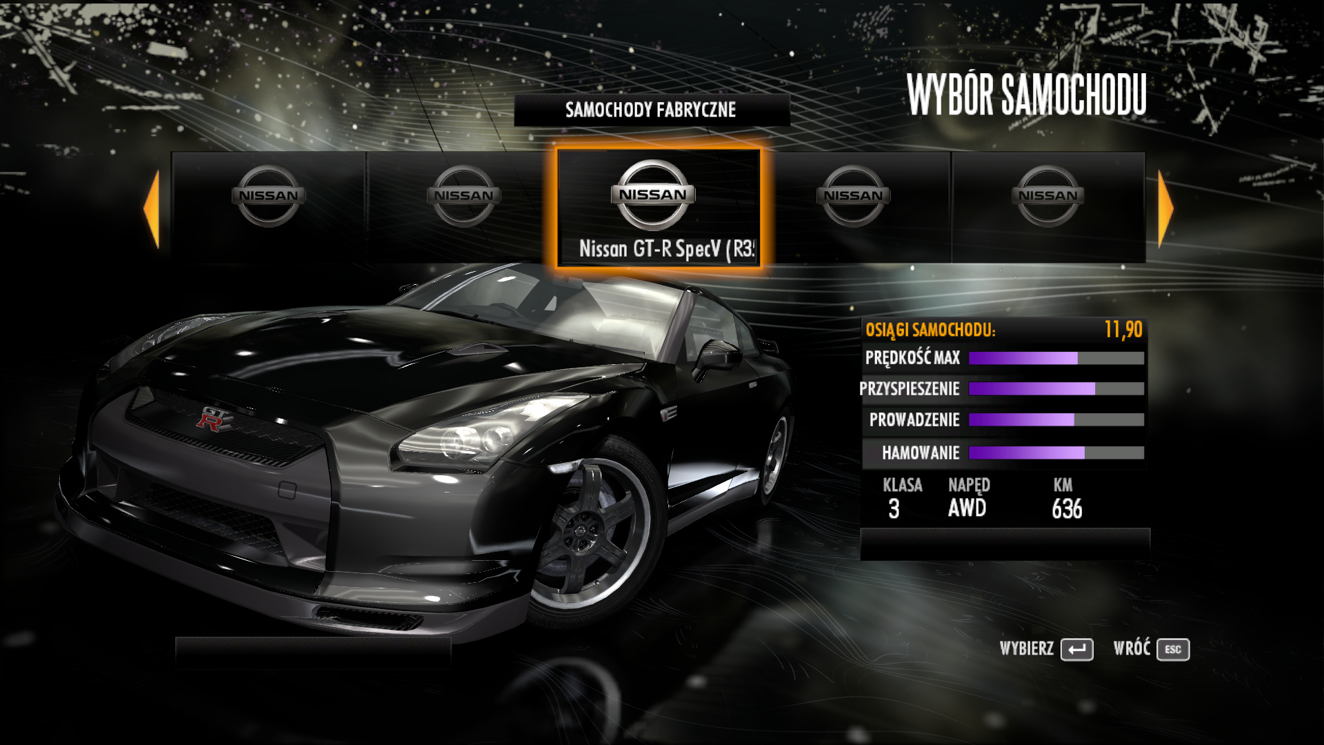 | Nissan GT-R SpecV (R35) | 3 | Japońska | 225,000 | AWD | 80 gwiazdek | Podstawowa wersja gry | |
