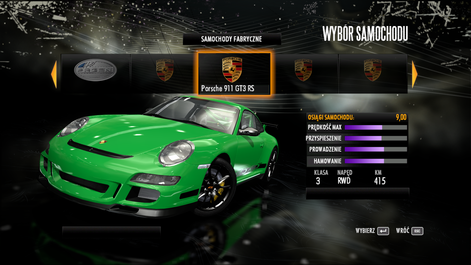 | Porsche 911 GT3 RS | 3 | Europejska | 160,000 | RWD | 80 gwiazdek | Podstawowa wersja gry | |