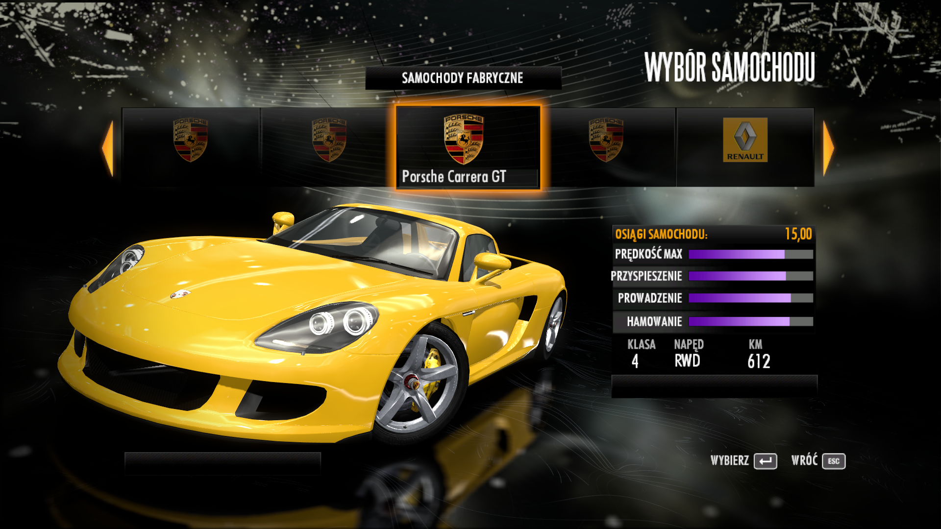 | Porsche Carrera GT | 4 | Europejska | 700,000 | RWD | 180 gwiazdek | Podstawowa wersja gry | |