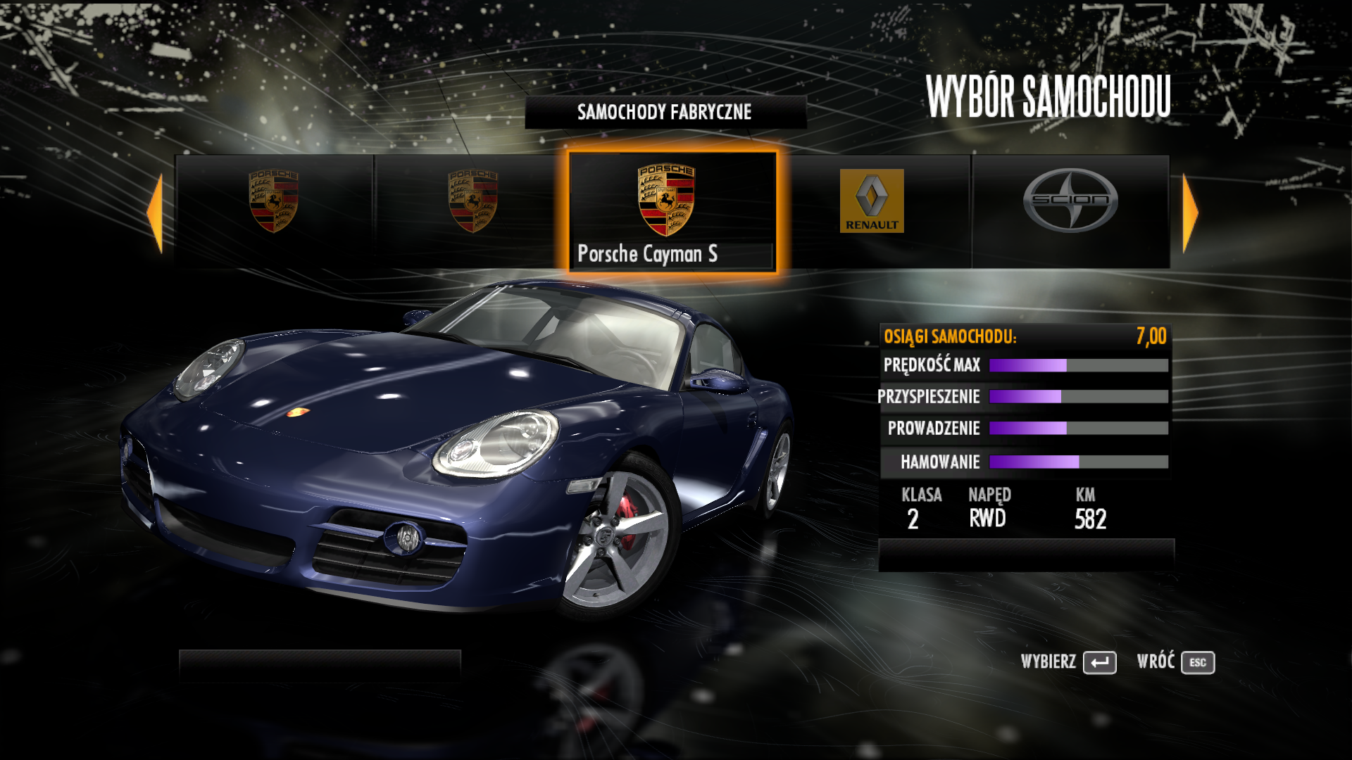 | Porsche Cayman S | 2 | Europejska | 110,000 | RWD | 30 gwiazdek | Podstawowa wersja gry | |