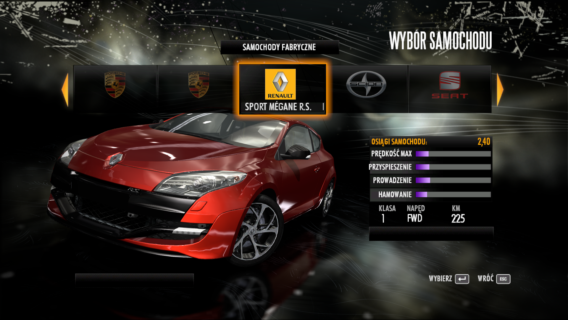 | Renault Mégane RS | 1 | Europejska | 23,000 | FWD | Dostępny od początku | Podstawowa wersja gry | |