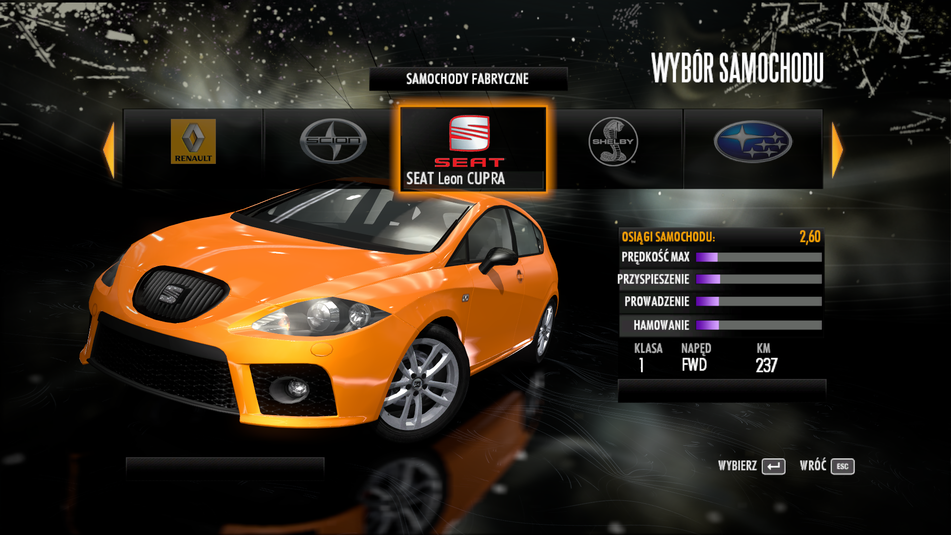 | Seat Leon Cupra | 1 | Europejska | 22,000 | FWD | Dostępny od początku | Podstawowa wersja gry | |