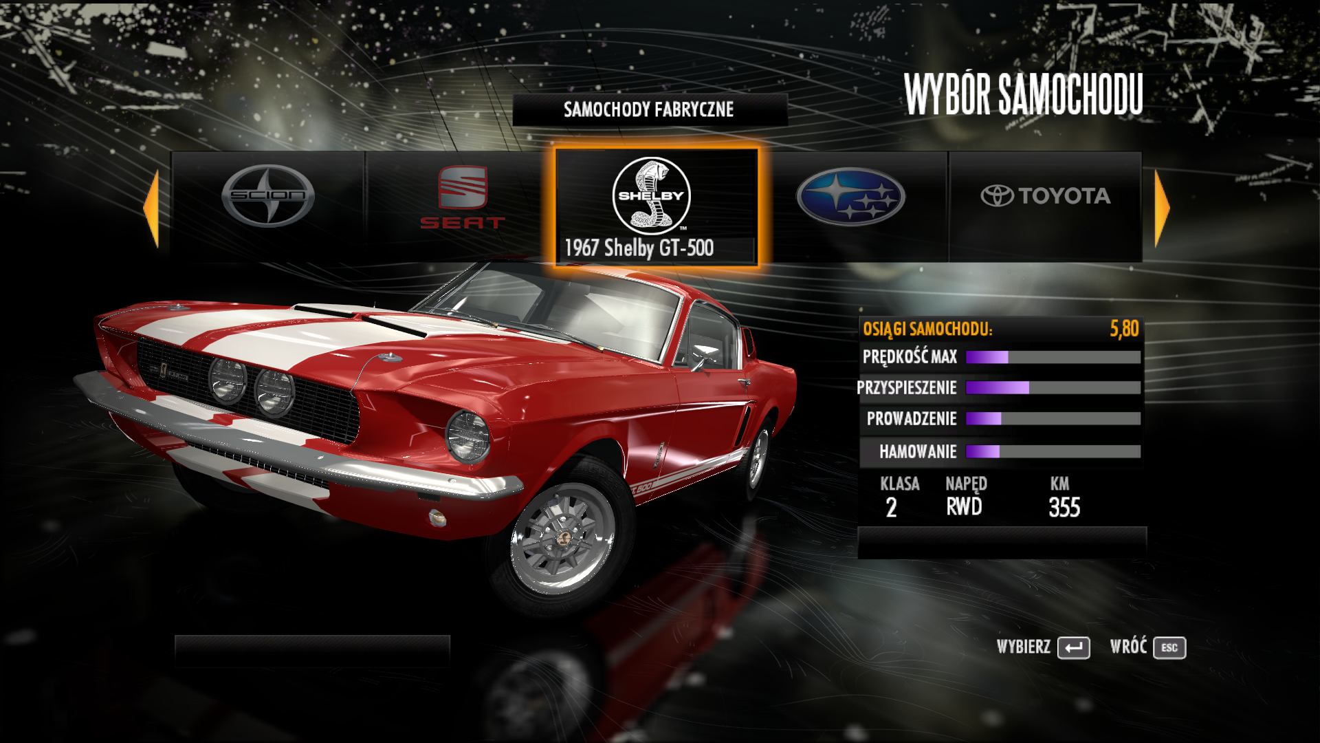 | Shelby GT-500 (1967) | 2 | Amerykańska | 0 | RWD | ✓ | Dostępny od początku | Team Racing Pack |