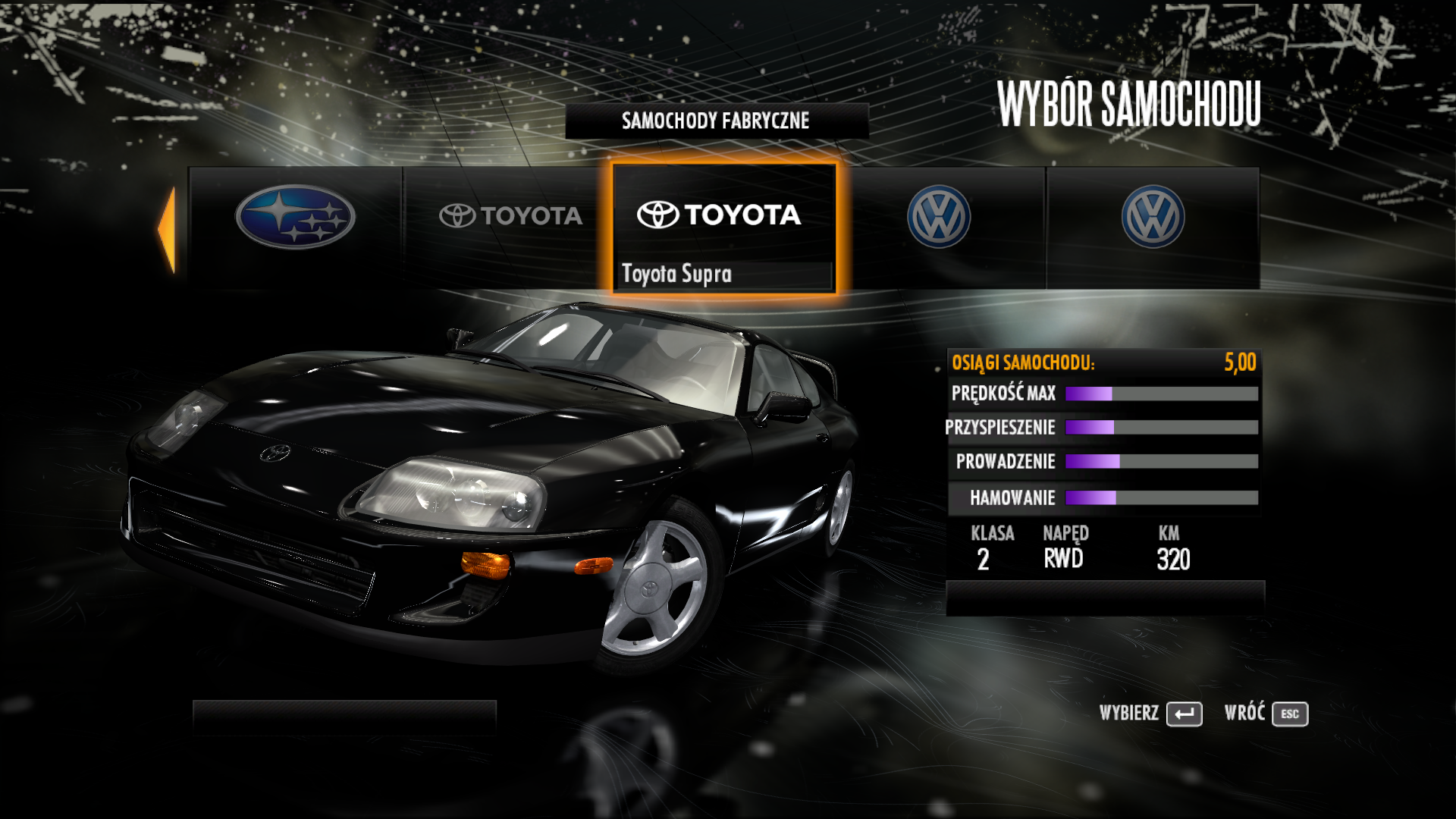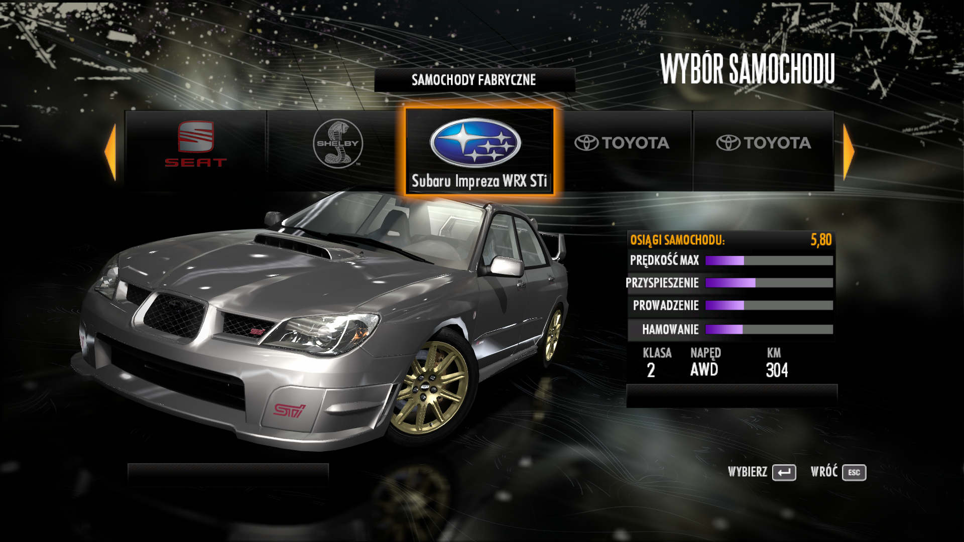 | Subaru Impreza WRX STI | 2 | Japońska | 65,000 | AWD | 30 gwiazdek | Podstawowa wersja gry | |
