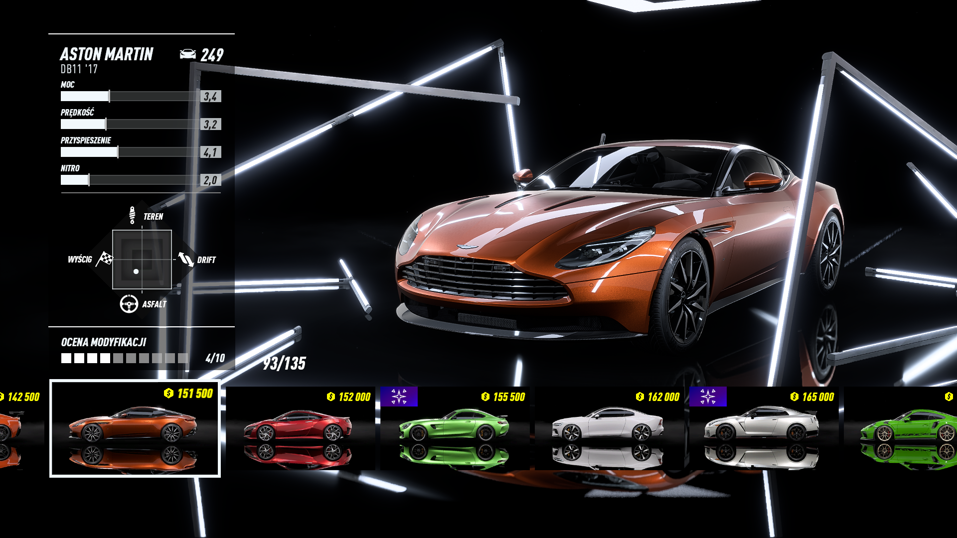 | Aston Martin DB11 | 2017 | Sportowy | 249 | 151,500 | 600 | 1239 | 5/10 | Osiągnij 20 poziom REP | Podstawowa wersja gry | |