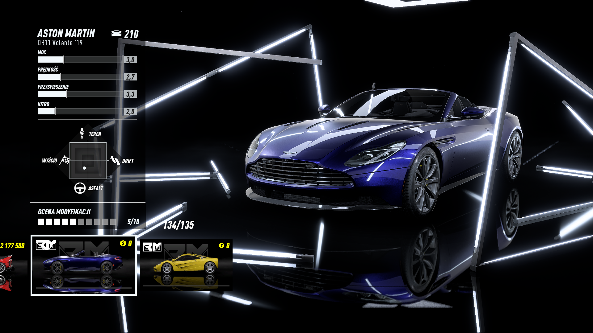| Aston Martin DB11 Volante | 2019 | Sportowy | 210 | 0 | 503 | 1014 | 5/10 | Osiągnij 20 poziom REP | Aktualizacja Black Market | |