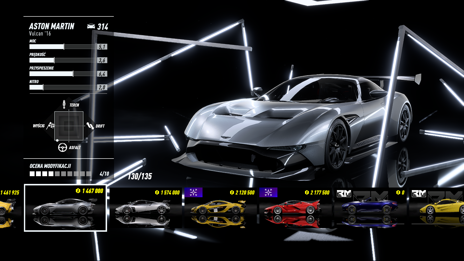 | Aston Martin Vulcan | 2016 | Hipersamochód | 314 | 1,467,000 | 820 | 1234 | 4/10 | Osiągnij 40 poziom REP | Podstawowa wersja gry | |