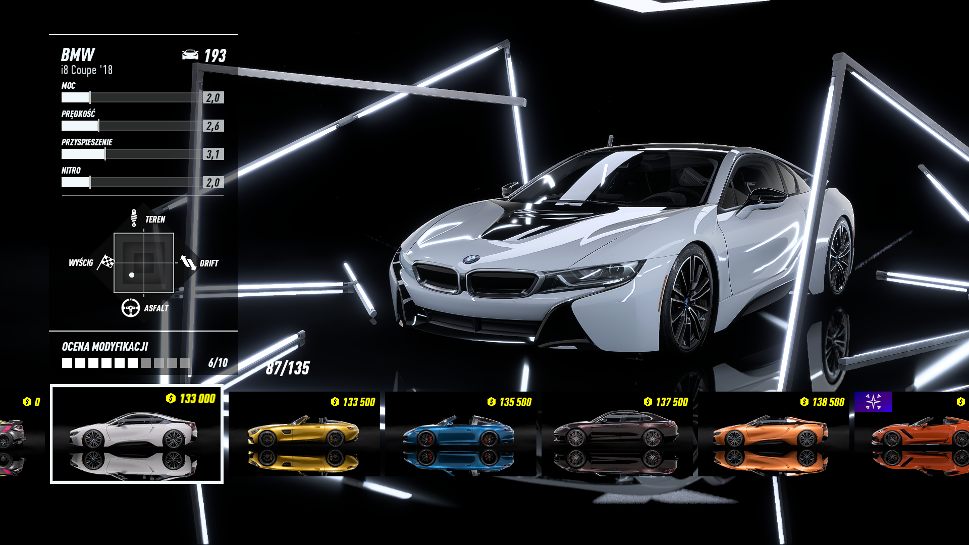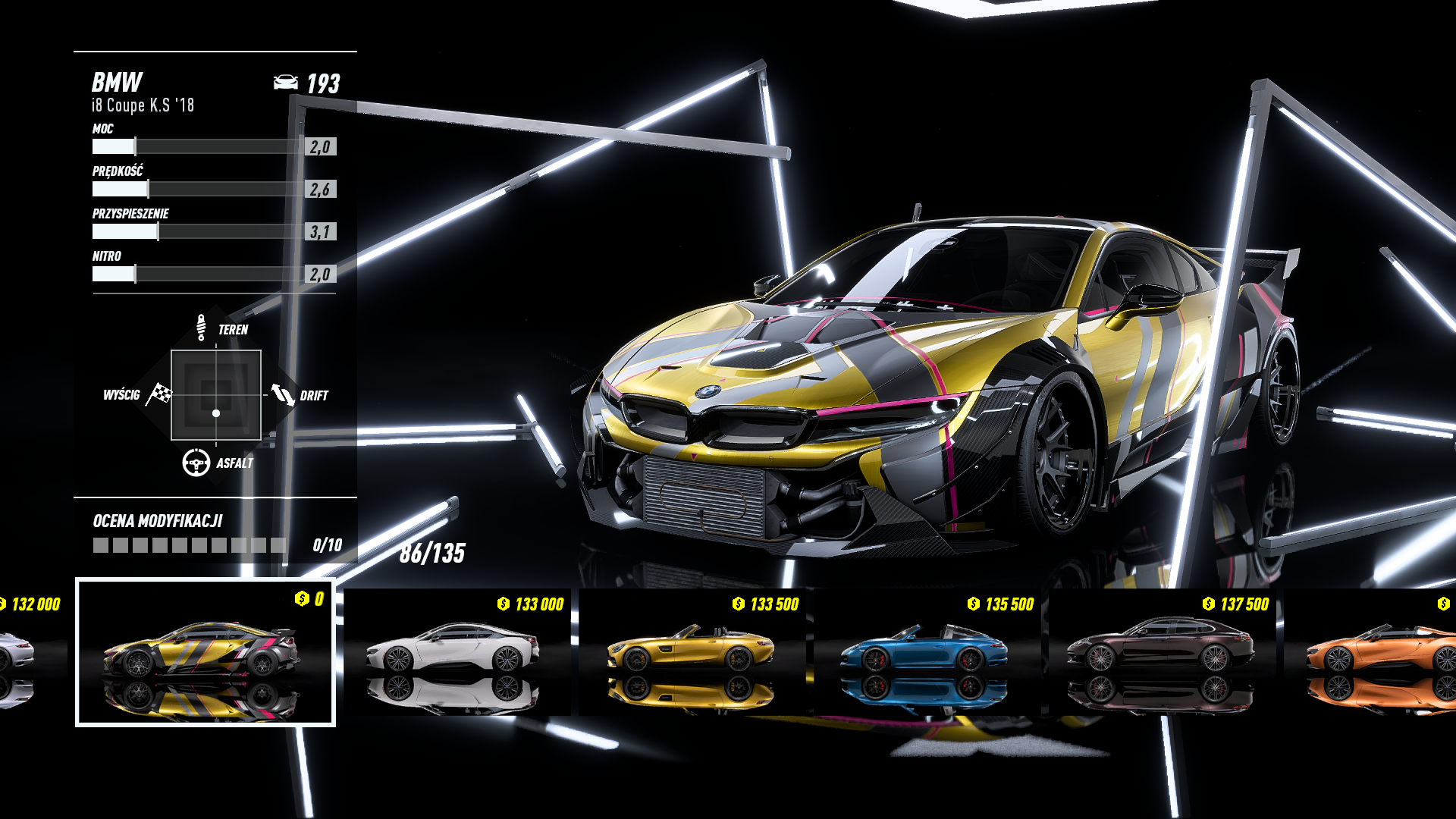 | BMW i8 Coupé K.S. | 2018 | Sportowy | 193 | 0 | 369 | 660 | Osiągnij 10 poziom REP | Edycja Deluxe |