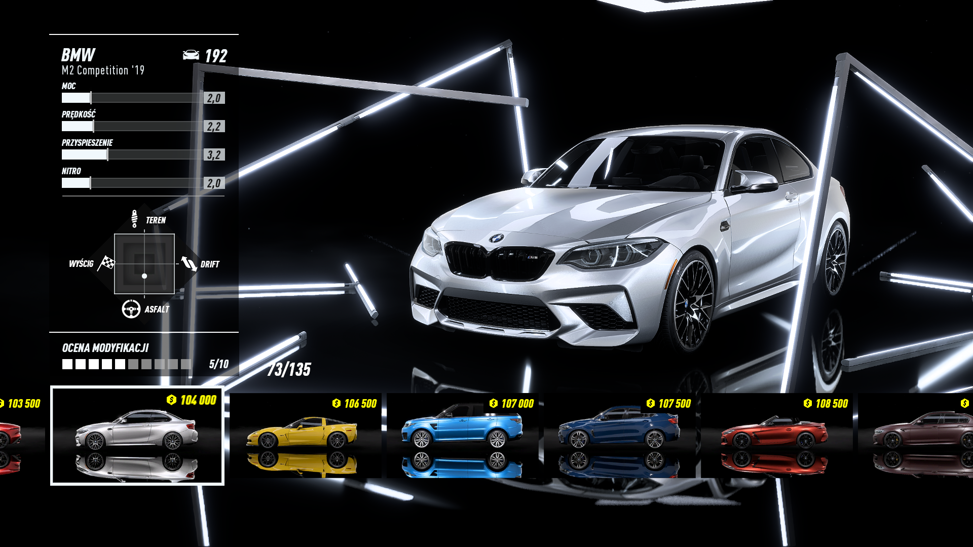 | BMW M2 Competition | 2019 | Wyczynowy | 192 | 104,000 | 404 | 787 | 5/10 | Osiągnij 16 poziom REP | Podstawowa wersja gry | |