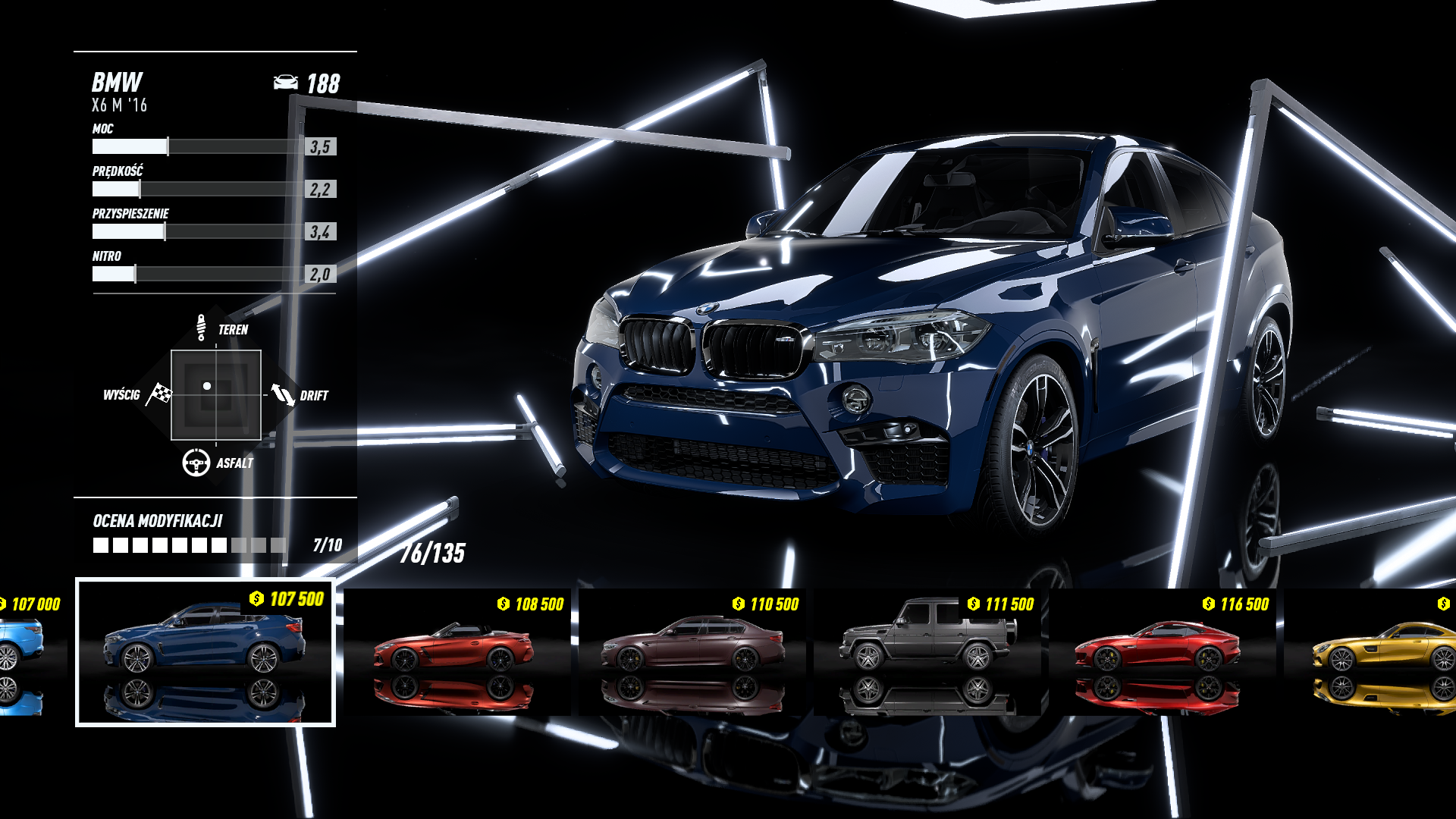 | BMW X6 M | 2016 | SUV | 188 | 107,500 | 567 | 1096 | 7/10 | Osiągnij 16 poziom REP | Podstawowa wersja gry | |