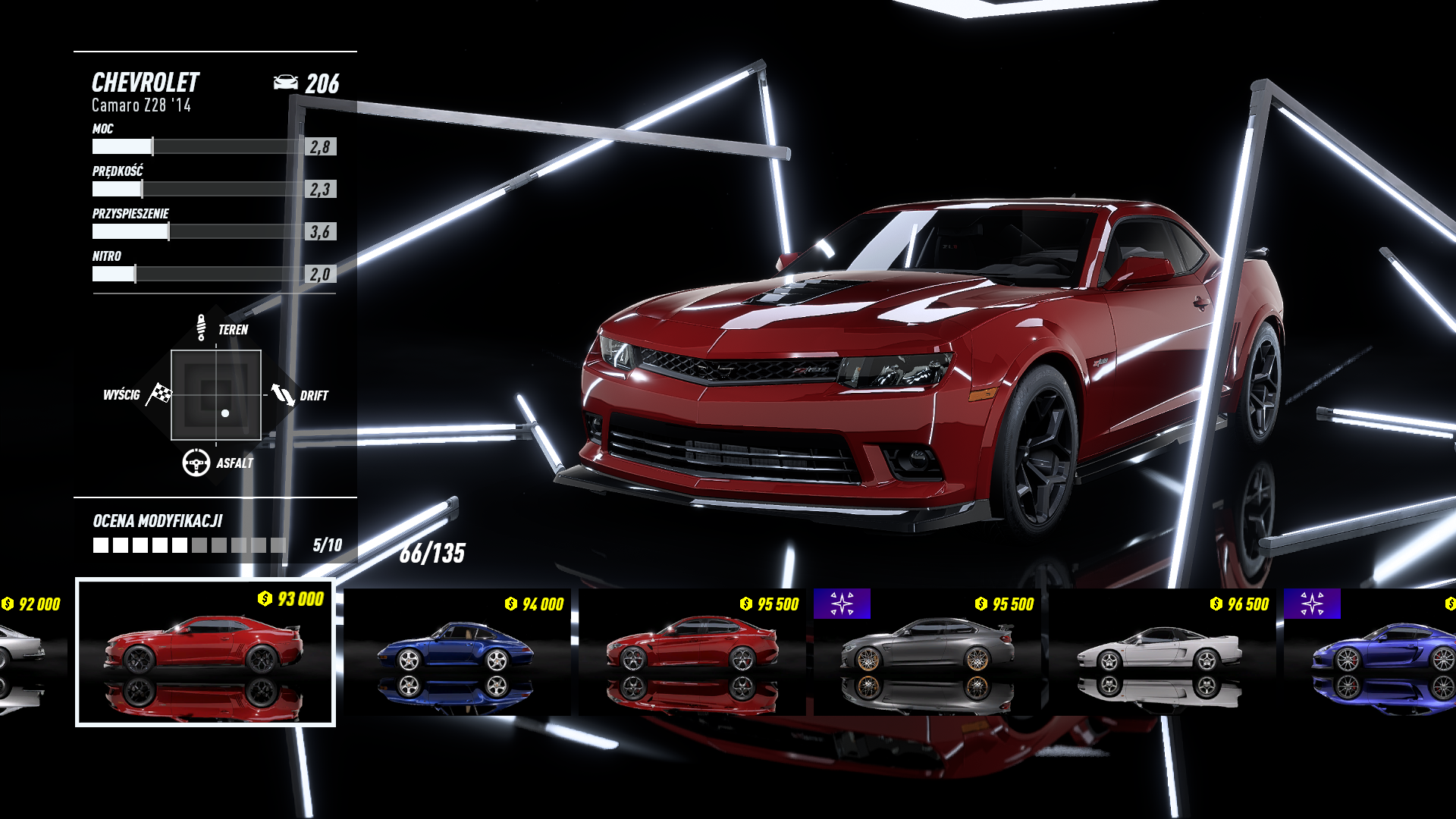 | Chevrolet Camaro Z28 | 2014 | Muscle car | 206 | 93,000 | 504 | 1236 | 5/10 | Osiągnij 18 poziom REP | Podstawowa wersja gry | |