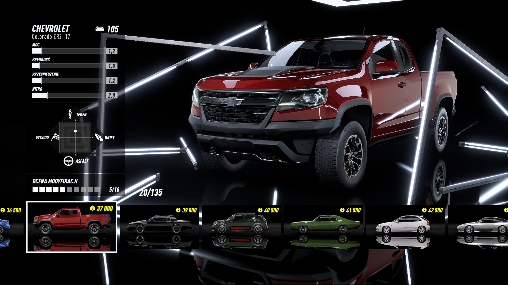 | Chevrolet Colorado ZR2 | 2017 | Pick-up | 105 | 37,000 | 308 | 935 | 5/10 | Osiągnij 24 poziom REP | Podstawowa wersja gry | |