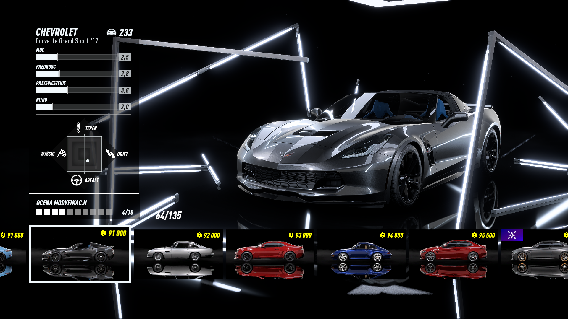 | Chevrolet Corvette Grand Sport | 2017 | Sportowy | 233 | 91,000 | 460 | 1239 | 4/10 | Osiągnij 20 poziom REP | Podstawowa wersja gry | |