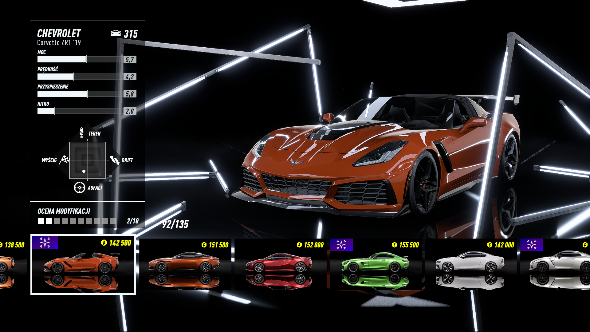 | Chevrolet Corvette ZR1 | 2019 | Sportowy | 315 | 142,500 | 755 | 1239 | 2/10 | Osiągnij 32 poziom REP | Podstawowa wersja gry | |