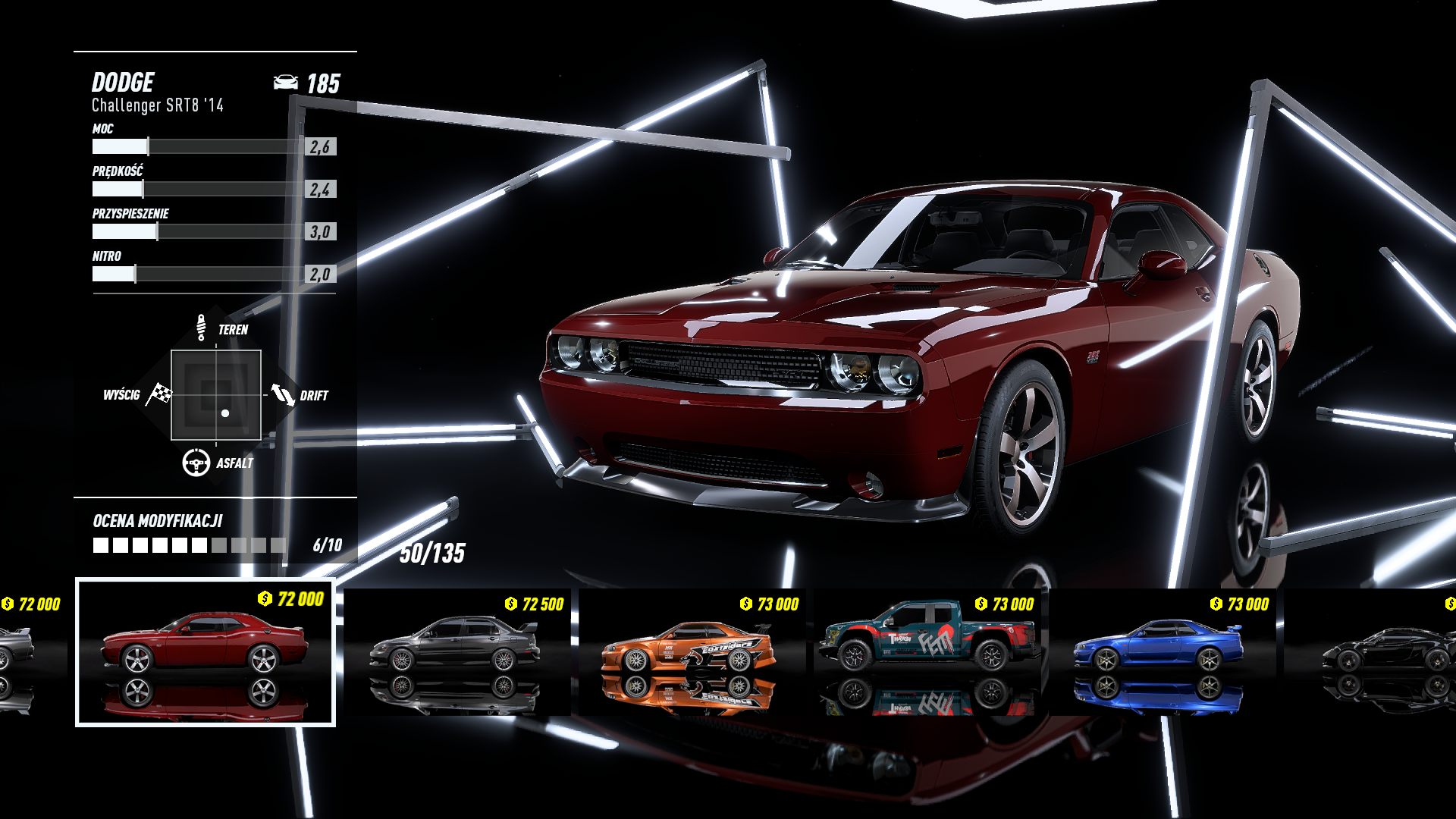 | Dodge Challenger SRT8 | 2014 | Muscle car | 185 | 72,000 | 470 | 1217 | 6/10 | Osiągnij 10 poziom REP | Podstawowa wersja gry | |