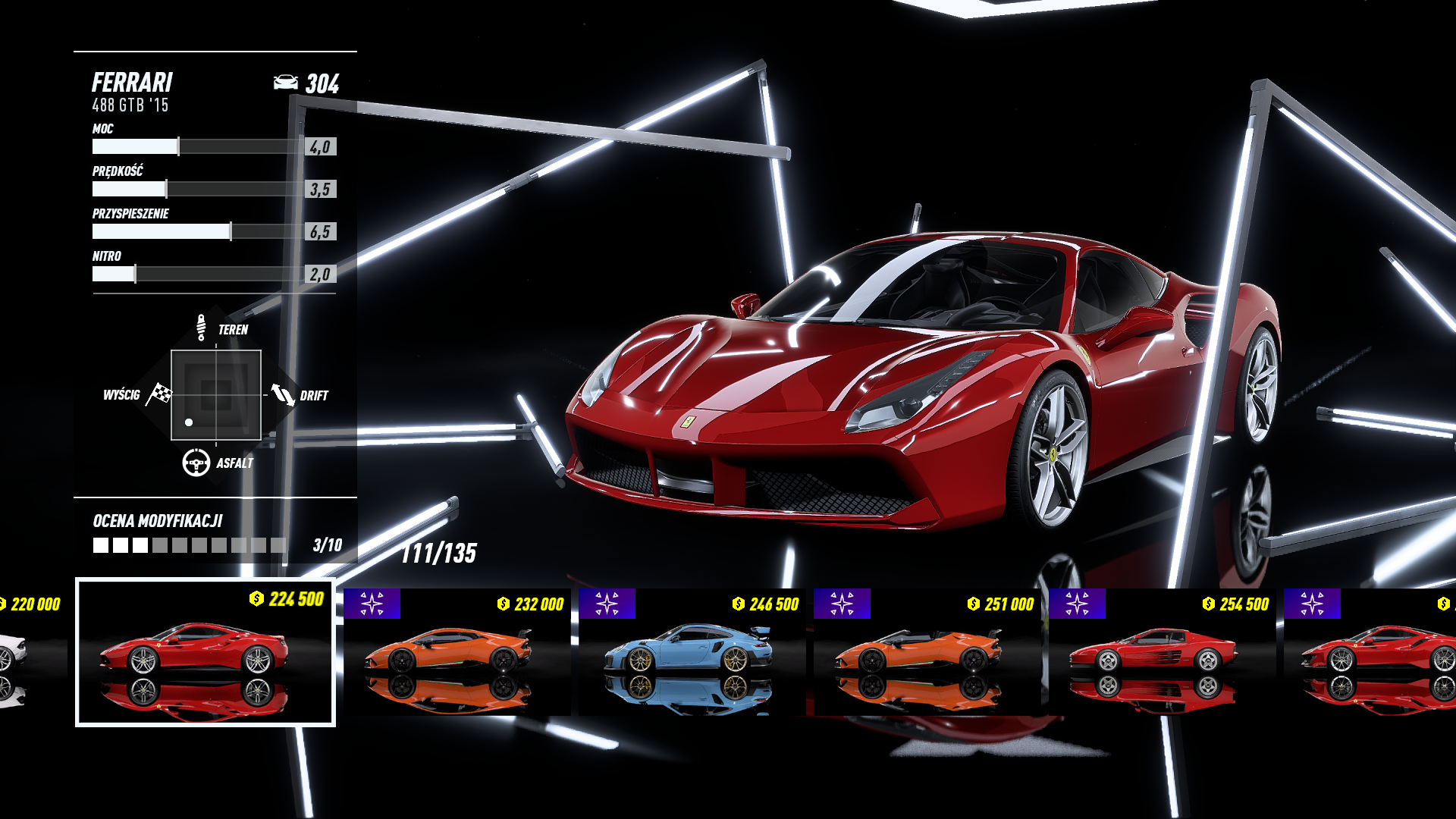 | Ferrari 488 GTB | 2015 | Supersamochód | 304 | 224,500 | 661 | 1194 | 3/10 | Osiągnij 32 poziom REP | Podstawowa wersja gry | |