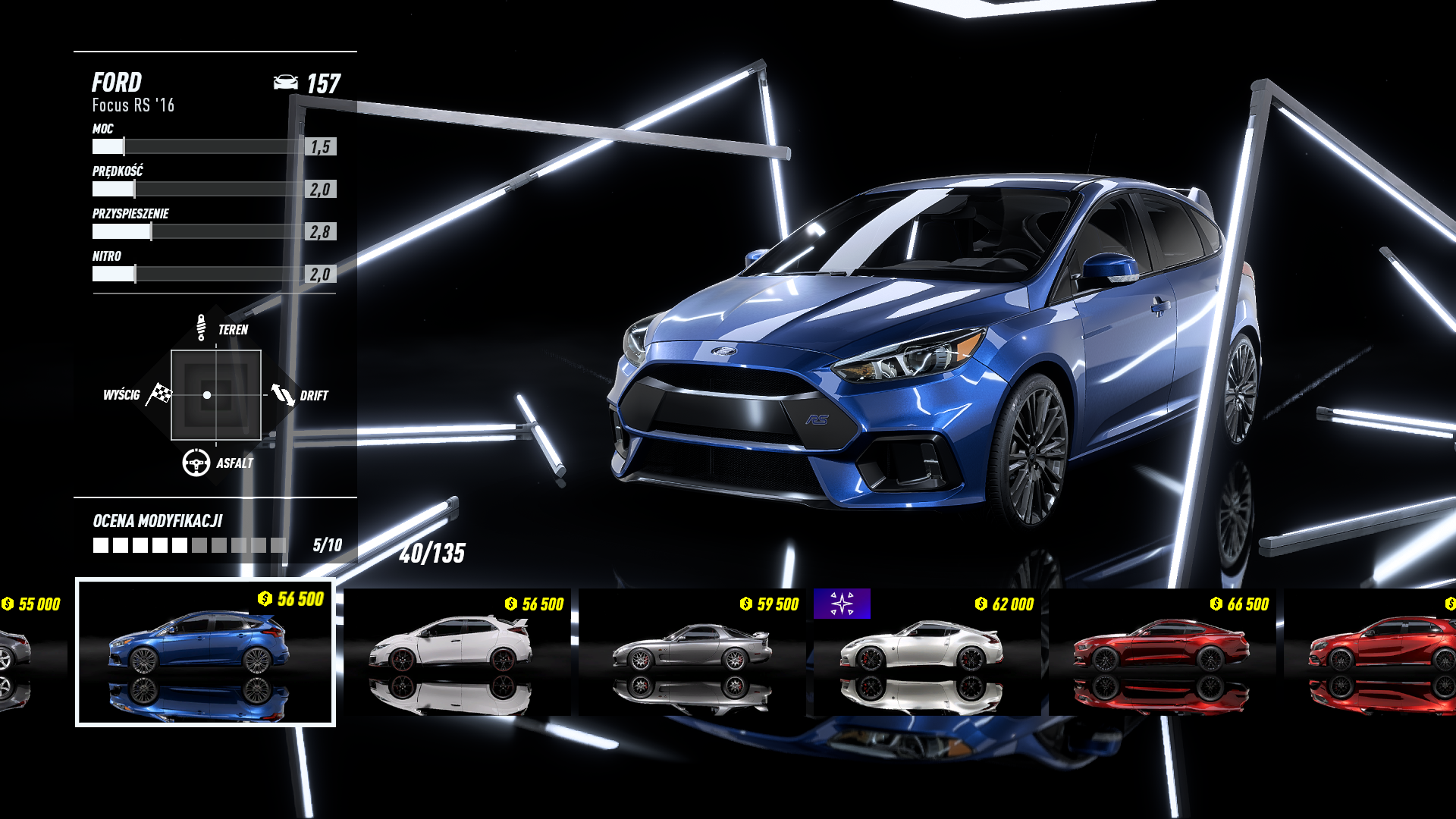 | Ford Focus RS | 2016 | Hot hatch | 157 | 56,500 | 345 | 645 | 5/10 | Osiągnij 16 poziom REP | Podstawowa wersja gry | |