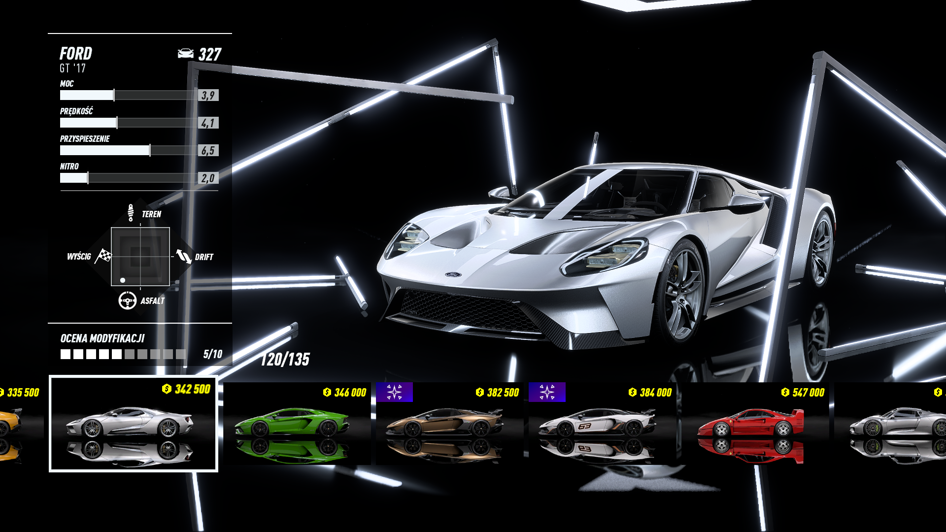 | Ford GT | 2017 | Supersamochód | 327 | 342,500 | 646 | 1169 | 5/10 | Osiągnij 36 poziom REP | Podstawowa wersja gry | |