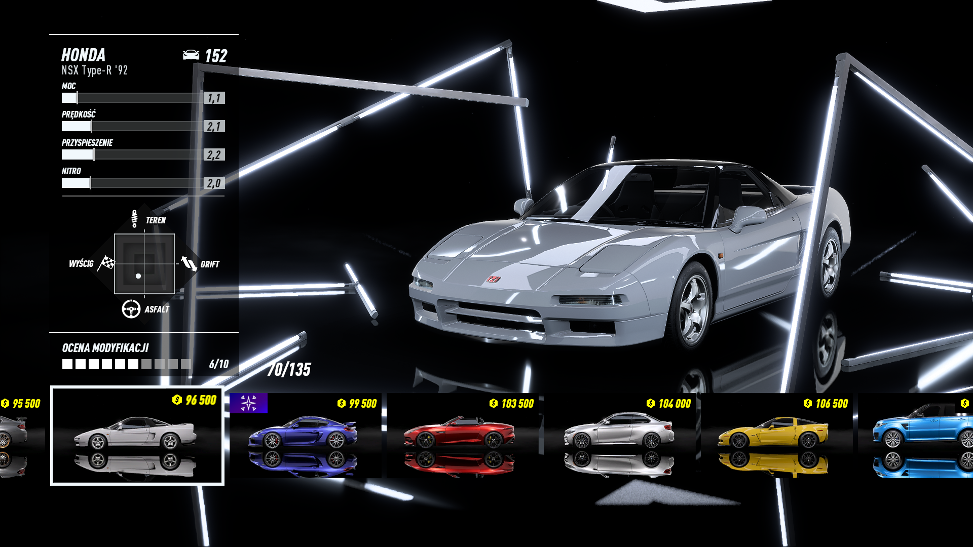 | Honda NSX Type-R | 1992 | Sportowy | 152 | 96,500 | 276 | 799 | 6/10 | Osiągnij 16 poziom REP | Podstawowa wersja gry | |